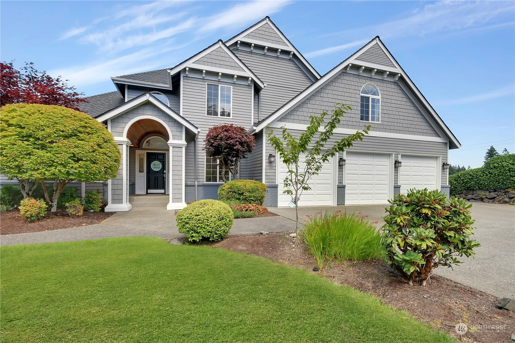97′ of Lake Tapps Waterfront! This 4,086 sqft home, perfect for water enthusiasts, features 4 beds + den, & 3.5 baths. Dock, boat lift w/ cover, jet ski lift, & easy lake access. The home boasts a newer 50-year roof, hardwood floors, & a gourmet kitchen w/ SS appliances, a new range hood, quartz countertops, walk-in pantry, & a central vac system. The family room opens to a deck, ideal for entertaining. Upstairs, find 3 bedrooms, a full guest bath, a bonus room/gym, & a luxurious primary en-suite w/ heated bathroom floors, a private deck, & a humongous walk-in closet. The lower level offers a M-I-L 2nd kitchen, a 4th bdrm, full bath & rec room. 3-car garage w/ Tesla charger is a MUST SEE! POSSIBLE 3.375 ASSUMABLE LOAN!