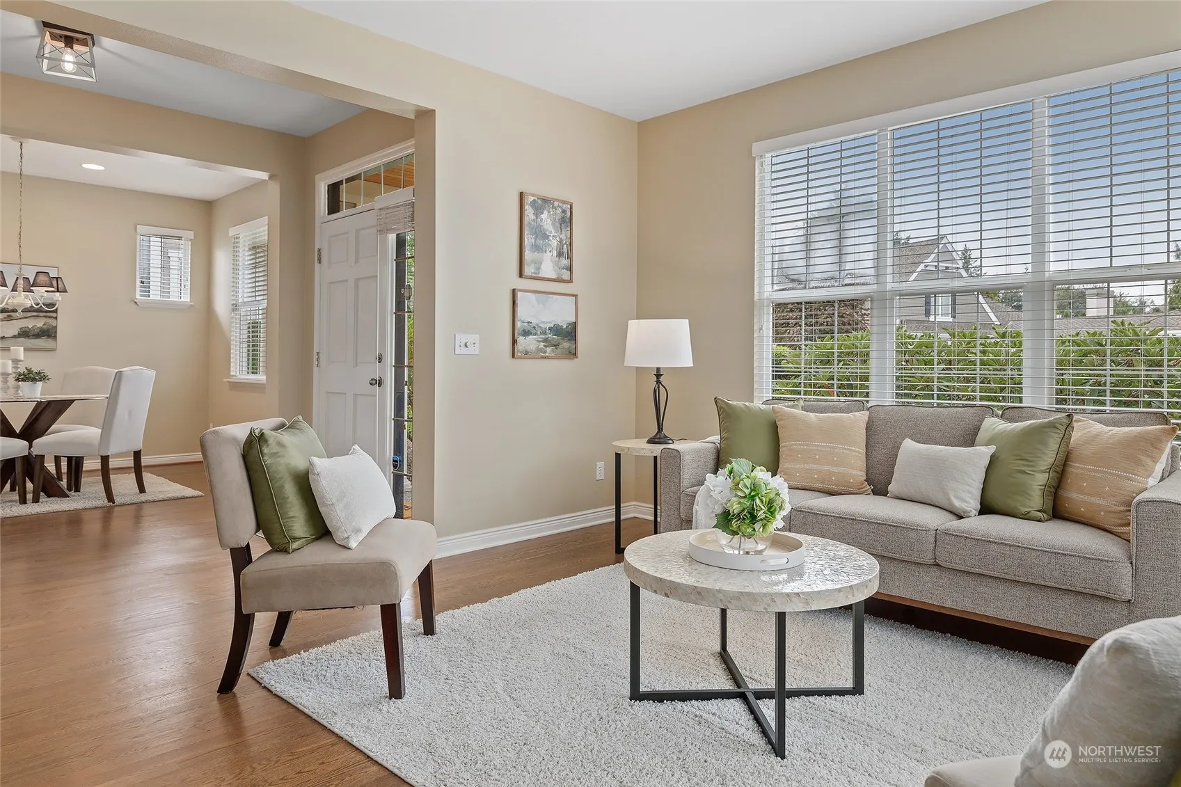Quiet luxury! This is the one you’ve been waiting for in Mill Creek’s highly sought after Amberleigh neighborhood. Buchan-built quality, rich finishes, hardwood floors throughout. Large primary bed/bath/walk-in closet on main floor plus living room with gas fireplace for cozy fall/winter evenings/ambience, formal dining room, powder room, kitchen with eating space, garden window, roomy pantry, separate laundry, private patio for relaxing, gardening; two bedrooms up with full bath, two-car garage with loft. A/C in summer! Newer 50-year roof. No yard work (HOA does it all!) Great proximity to golf, tennis and country club and MC Town Center, 160 acres of common area/trails, parks, playgrounds, neighborhood security, transit. AHS Warranty