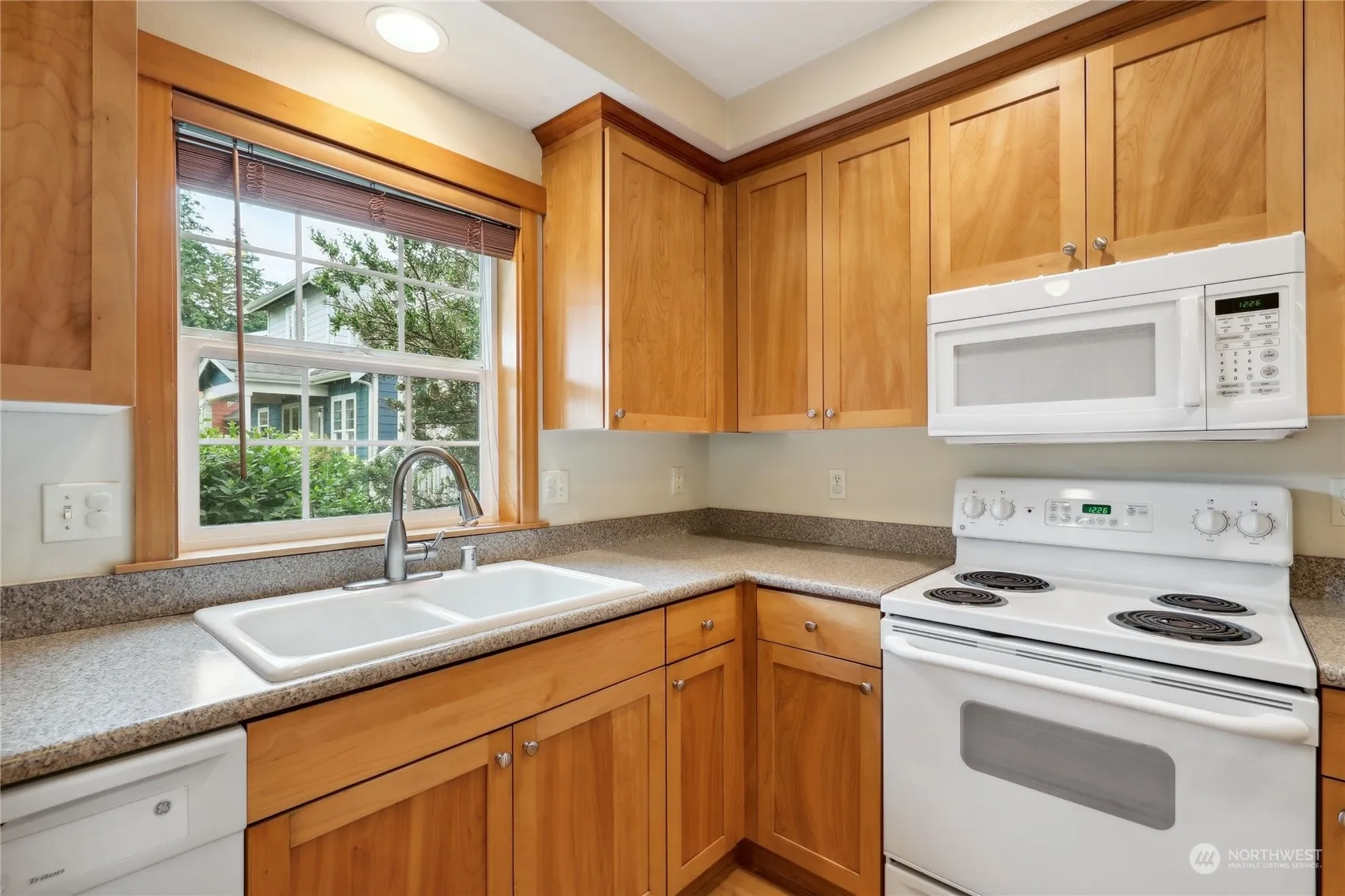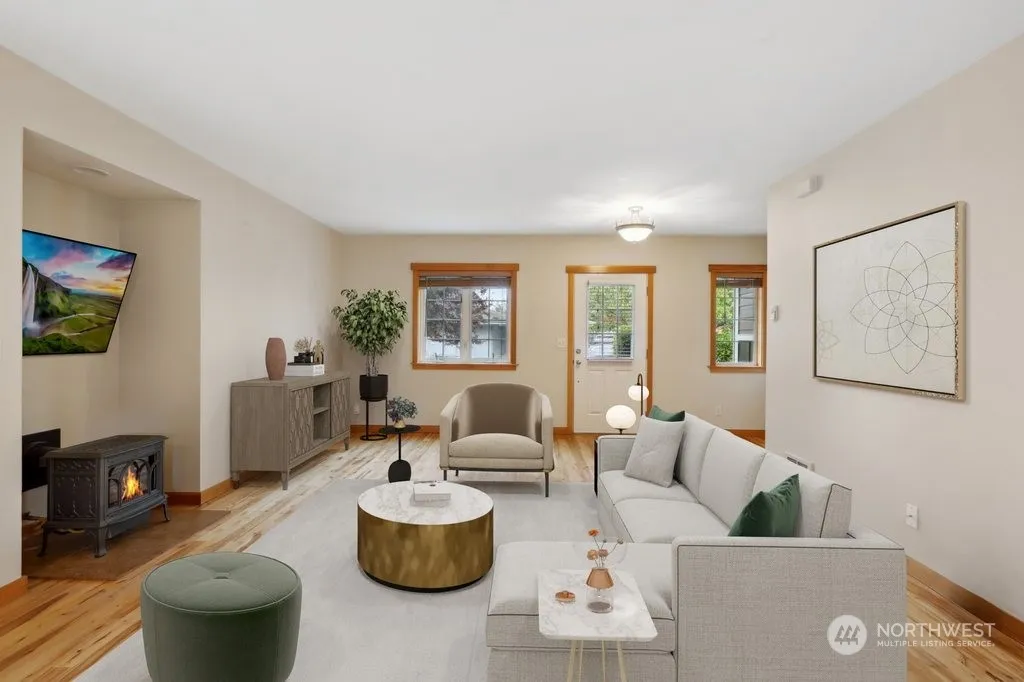 In the delightful Stonecress community, this bright and cheerful townhome offers a perfect place to call home. The main level includes a kitchen, an open living area with a cozy propane fireplace, hardwood floors, laundry, pantry, and a guest bath. Off the kitchen, a private, covered porch overlooks a community promenade, with shared open space, mature landscaping and gardens. Upstairs, two bedrooms each feature en suite baths and ample closet space. Enjoy in-town living with close proximity to Winslow’s dining, shopping, and easy ferry access.