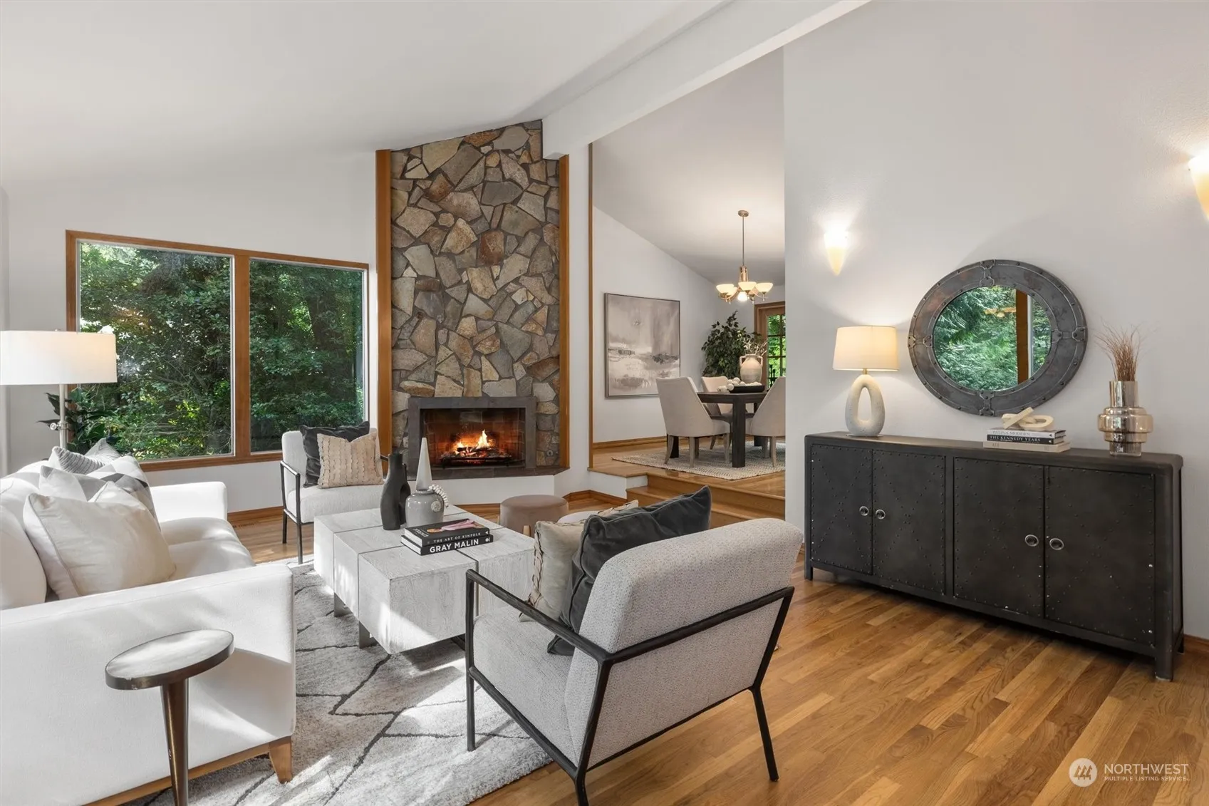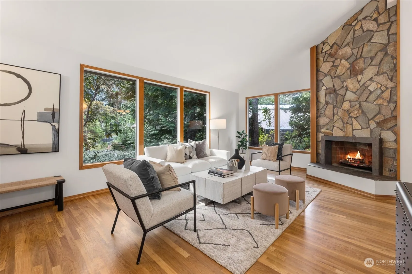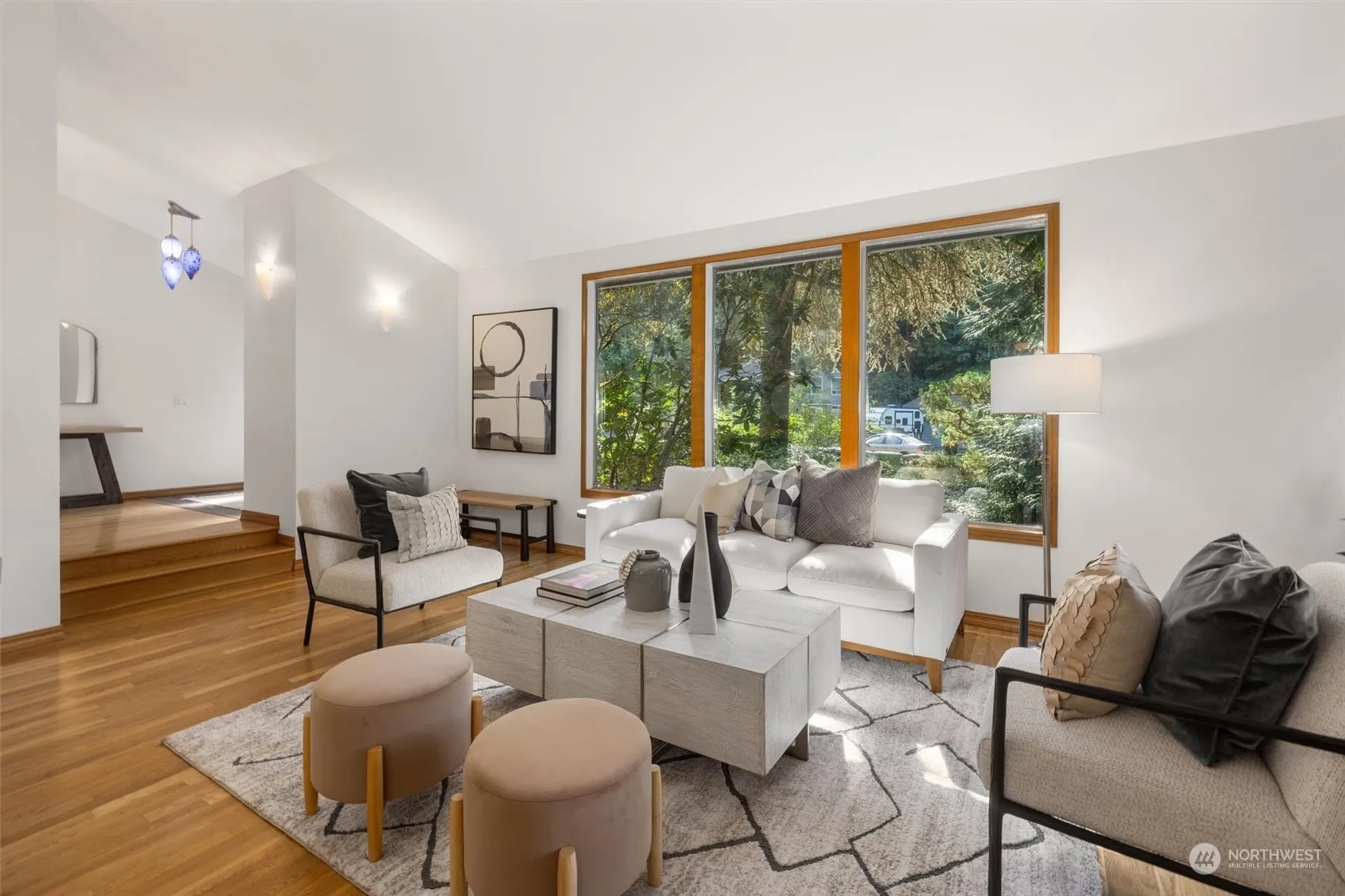 Spacious & delightful home on quiet mid-island cul-de-sac. Flat back yard provides space for lawn games, BBQ & fire pit with lots of privacy. Nods to mid-century artistry w/original hardwoods & stone. Sunlight floods through picture windows, blending indoor and outdoor living. Main floor wows w/vaulted ceilings & circular layout makes entertaining a breeze. French doors open from the large kitchen to the patio. 4 bdrms & 4.5 baths provide space for all. Huge primary suite incl large, well-appointed bathroom. Guest suite, dedicated office, cozy family room & large laundry room on lower level. Refreshed w/new exterior paint & carpet. 2 EV outlets! Quick to parks, schools, shopping & restaurants. This home checks all of the boxes. Don’t wait.