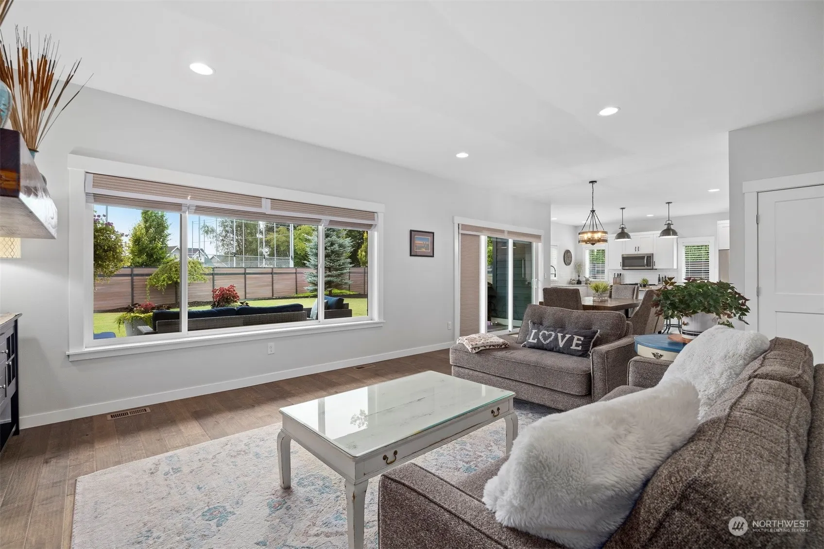 Pride of ownership is evident in this gorgeous Craftsman. You’re greeted by an ideal floorplan; open living/dining room overlooking the backyard accented by oversized kitchen w/upgraded appliances & walk-in pantry. Primary on main fts walk-in closet & en-suite w/dual sinks, tiled shower. Loads of storage & extra BR on main. 2 spacious BRs upstairs w/full bath, family room + unfinished 5th BR. Seamlessly blend indoor & outdoor living w/a stunning 3-panel slider opening to a stamped concrete patio, sheltered by a tongue & groove vaulted ceiling. Spacious, flat & sun-drenched yard w/sprinkler & drip system, all enclosed by a no-maintenance modern comp. fence. Space for storage or tinkering in the huge garage w/storage racks & epoxied floors.
