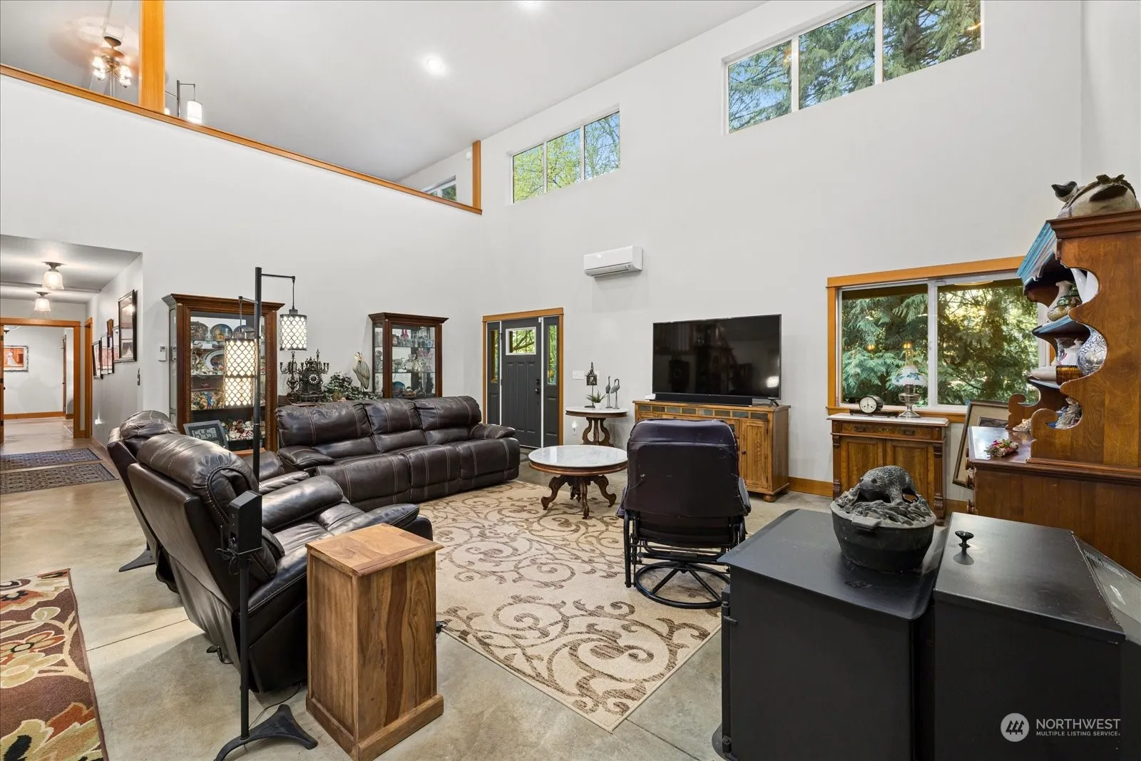 Welcome to your own forest oasis with a custom-built Spane home & 36×42 detached shop! Built in 2014, this exquisite home features open main living with 20+ft tall ceilings, cement floors, air-conditioning, HUGE covered wrap-around patio, quality wood trim & doors, and large en-suite primary bed on the main floor. Upstairs loft has full bath & potential for 3rd bed/bonus room. The fully fenced property offers the privacy and tranquility you’re looking for, w/ 500′ of riverfront (no flood risk to home) & hundreds of acres of wooded forest w/ access to hiking or nature walks right out your backdoor. Shop has 3 extra-deep bays w/ a finished room on 2nd floor & large lean-to on the side for boat/RV parking, and home has extra carport parking.