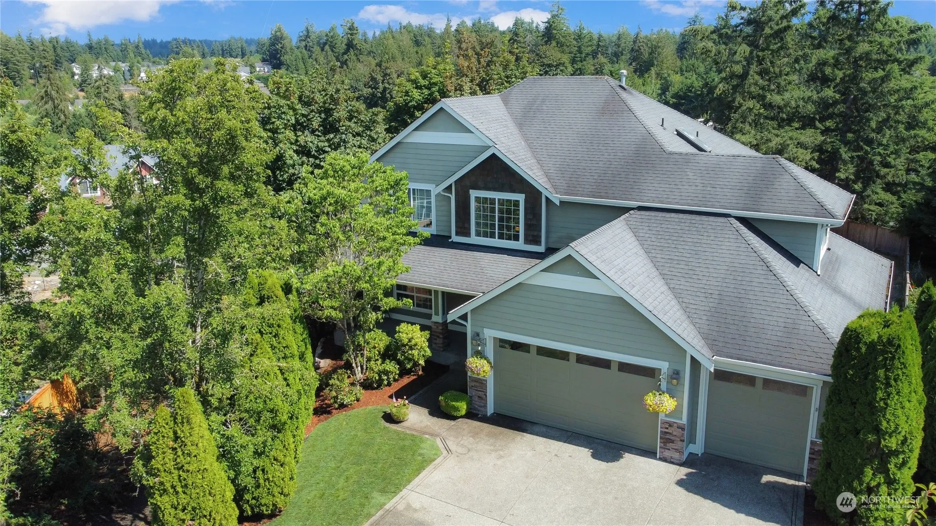 Welcome home to this beautiful Lake Wilderness Highland Greens home; Nestled in a cul de sac with view of Mt. Rainier; 4th Bedrm upstairs could be extra bonus rm/play room, etc; Brand new Trex decking & patio off kitchen; new flooring in kitchen, family rm, & entry; Open, light & bright home; kitchen w/ceramic tile countertops; new appliances just installed (cooktop, oven, microwave); 5 pc master bath; largest home & lot in neighborhood; Built-ins in family rm; Hardi siding; Enjoy X-Lg back yard with firepit; tons of storage under house; low HOA dues ($500/annual); Basement bath plumbed for shower; All appliances in house to remain;