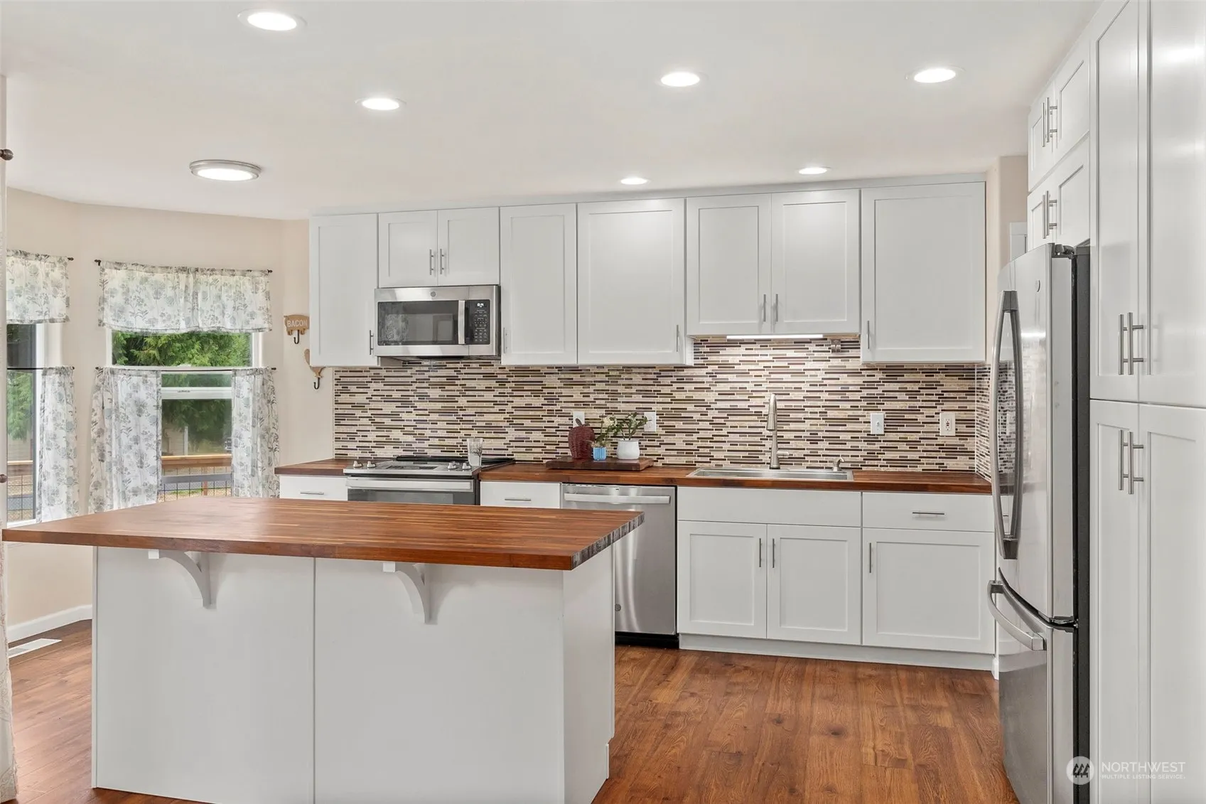 Everyday can be lake day! Overlooking serene Lake Lawrence and the Cascade foothills sits this beautiful 3BR, 2BA, 1673 SF rambler on a big, fenced 1/3+ acre lot. Built in 1996, w/ so many quality updates! Complete big, brand-new kitchen w/ walnut counters & custom moveable island. New heat pump/AC/water heater & sprinkler system in ’23. Both BA’s updated, new fixtures, flooring, trim, and doors…inside & out. Cozy propane FP, popular split-bedroom plan. 4-year-old cedar deck, roof & gutters just 6 years old! It’s even wired for a generator. Lovely garden area. All this in a quiet lakefront community with access to an awesome waterfront park, just down the street. Take a look today, pack your bathing suit tomorrow!