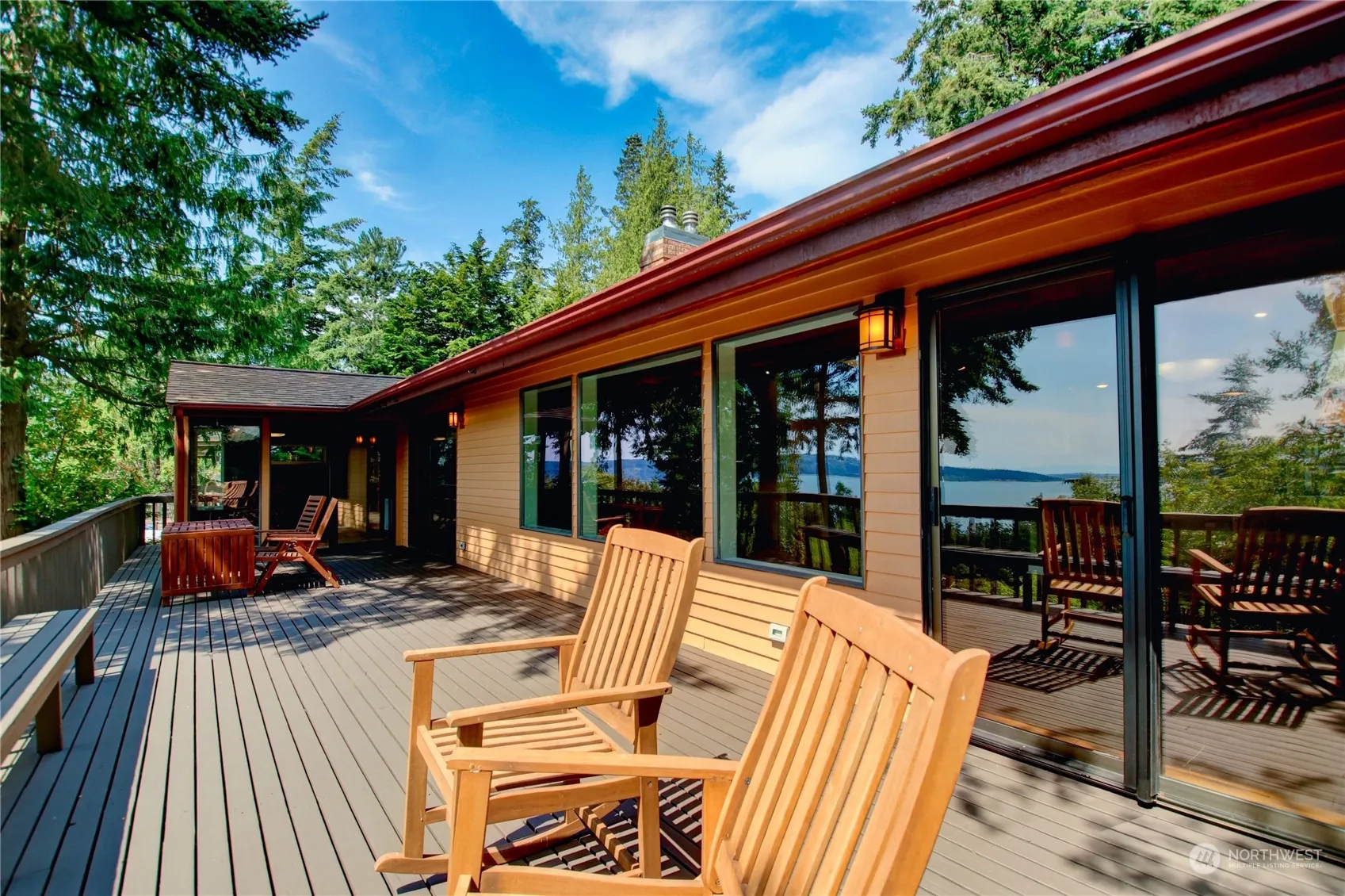 Private retreat with incredible views of Skagit Bay & the Olympic Mountains from almost every room. Quality renovations and upgrades throughout this impressive home. Vaulted ceilings, skylights & oversized windows make this home feel open & spacious. Beautiful hardwood, bamboo & cork floors highlight clean lines & artistic details throughout. Relax on the 500sq.ft deck or in the renovated sunroom off the master bedroom and enjoy the nightly sunset show. Discover the walk-in jetted soaking tub, whole home generator & surge protector, XL5 Thermador cooktop & more! The lower level offers a fully functioning ADU with private entrance and patio. Enjoy all of Shelter Bay’s many amenities: pickleball, tennis, pool, playground, marina & more.