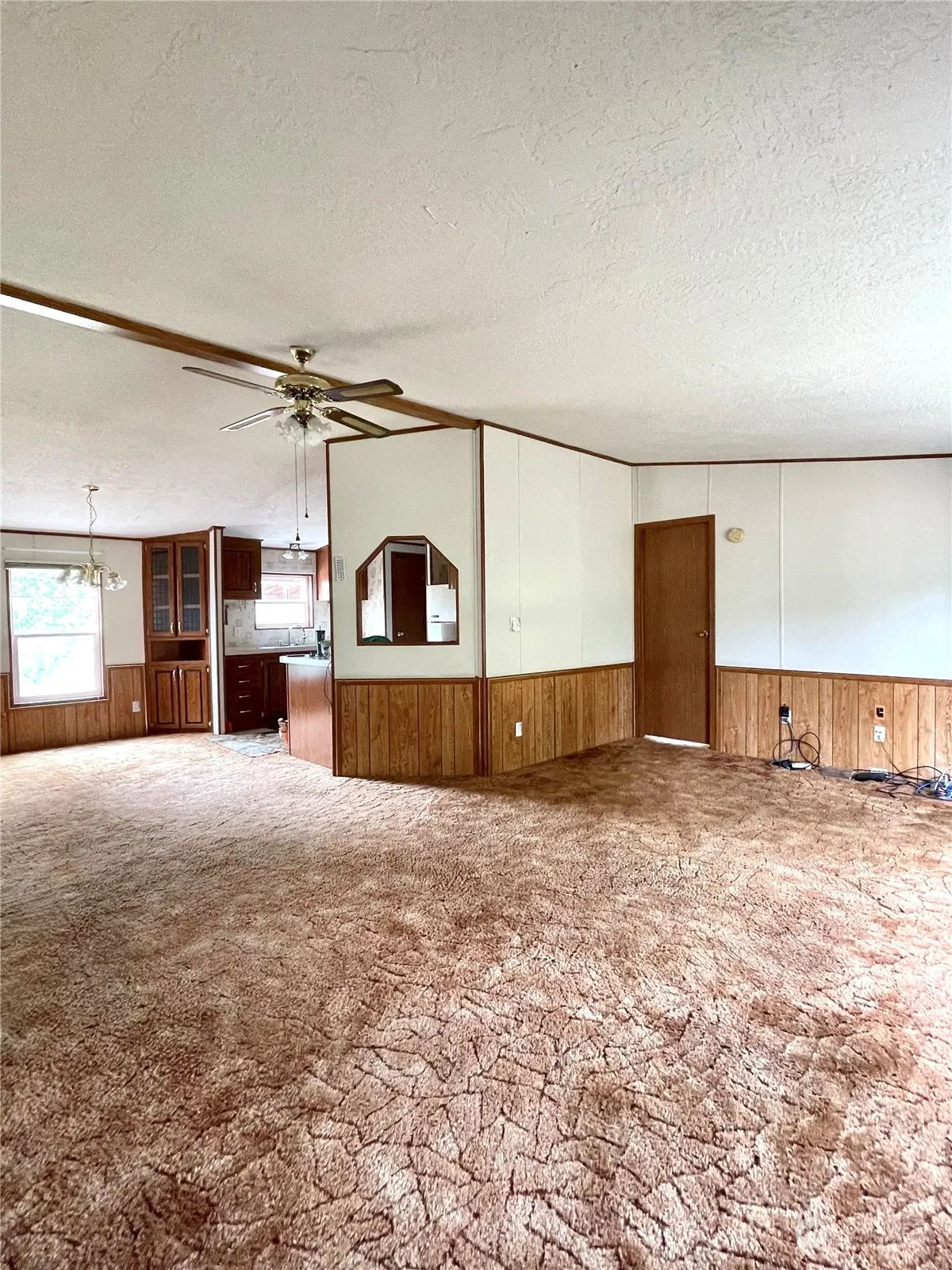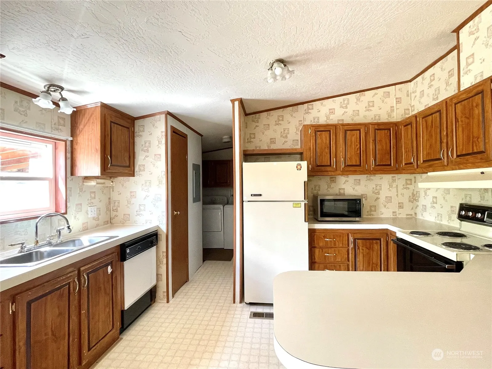 Close to Conconully & Omak! Manufactured home on 4+ acres! This 1188+/- square foot home includes 3 bedroom/2 bathroom, living room with ceiling fan & carpet, dining area with built-in corner cabinet, kitchen with breakfast bar & dishwasher, range/oven, fridge all stay. Primary bedroom with en-suite bath and walk-in closet. Utility room with washer & dryer and water softener. Main full bathroom has new flooring as of 2024. Front and back covered porches. Fenced and cross-fenced for your livestock. New roof 2023, HWT 2022. Detached carport. Out buildings. Private location. Fruit trees. Private well. Double pane windows. Heat pump. $229,900 H-3580 /MLS-2272502