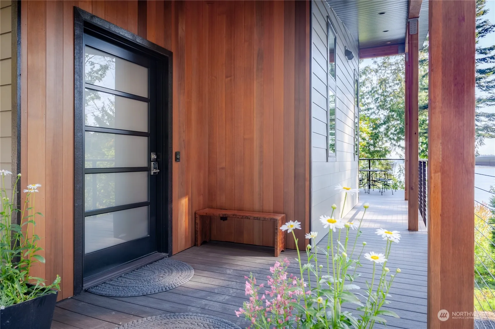 This home on 1.85 acres & 230′ waterfront is the epitome of architectural & design excellence! A gem high-standard build & thoughtful execution of elemental sophistication. Solid as they come; enter into the foyer, notice large format porcelain tiles (luxury vinyl plank on lower) w/radiant heat throughout, an impeccable kitchen; black walnut w/sapwood cabinets (soft-close drawers),Bosch appliances, gorgeous + sturdy Neolith countertops, both living rooms feature stunning basalt fireplaces w/black walnut mantle. Main floor living; primary suite with walk-in shower/custom closet, lower floor additional living space with wet bar, second primary & walk-out decks on both floors. Forested acreage w/ path to stairs lead to a sweet coved beach.