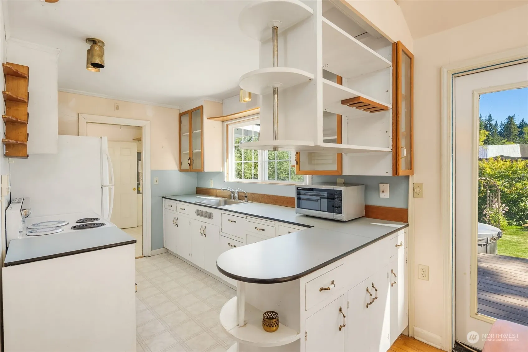 Welcome to this sweet cottage at the head of Eagle Harbor Bay. A magical outlook into the ever-shifting low & high tides! Where Great Blue Herons frequent to fish. A floating dock is ideal for launching a kayak or rowboat. Built in 1946, this 2-bedroom, 1-bath house is 1,396 sq ft. An addition on the back of the house can be used as a bedroom or a fabulous art studio with natural light. The large south-facing deck has spectacular views down the Bay. There is a detached toolshed/garage, a storage shed, & an artistic lean-to with a metal roof. New 2-bedrm septic installed. Public water connection installed. City of BI is adding a bike lane on Eagle Harbor Dr & updating the salmon stream culvert, construction in process thru 10/5/25.