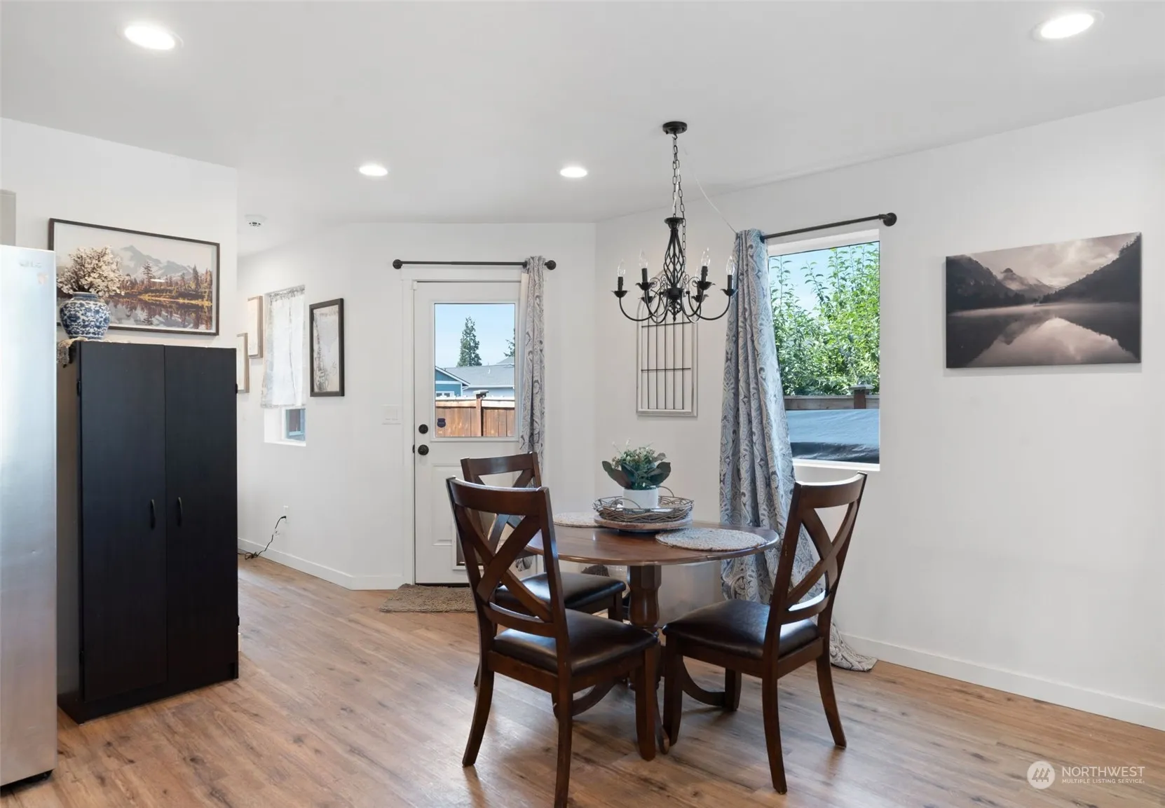 Small town charm, four-bedroom home with a full primary on the main, new build with a detached garage, on a corner lot—welcome home. Buckley’s newest available home, built in 2021 is ready to be called home with nothing to do and no detail missed. From the fully fenced lot to the three-year-old roof and everything in between. Step inside to your open kitchen, dining and living room, a large primary, guest bathroom, utility room and access to your backyard with a covered cabana and your very own hot tub on your main level. Head upstairs to three additional, spacious bedrooms, all with double closets. Don’t miss the large, detached garage with shop space, proximity to Downtown Buckley with so much to do and quick access to Mount Rainier.