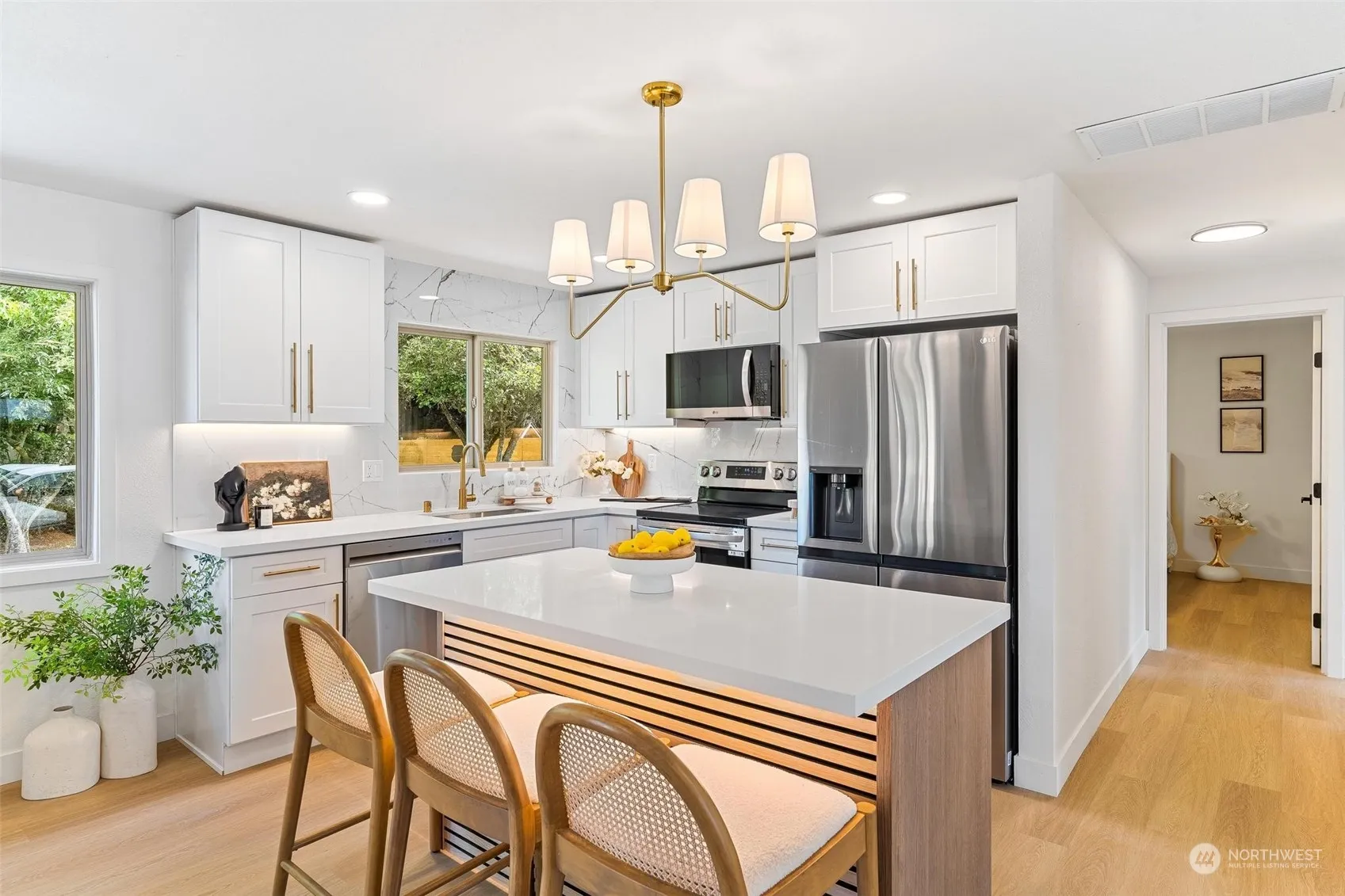 Welcome to your new home! Nestled in the heart of Mountlake Terrace, this delightful rambler is brimming w/ charm & warmth. Step inside to an inviting open layout with generous living space, perfect for relaxation & entertaining. The kitchen is a chef’s dream w/ Quartz countertops, new cabinets, and Stainless Steel Appliances. Enjoy luxury vinyl plank flooring in the living areas, carpeted bedrooms & tiled bathrooms. Freshly painted inside & out, with double-pane windows throughout. Primary bedroom features an en-suite w/ double vanities. The oversized backyard w/ newer fence features a large deck, ideal for gatherings. Oversized 2-car garage provides ample space. Close proximity to local shopping, dining & I-5.