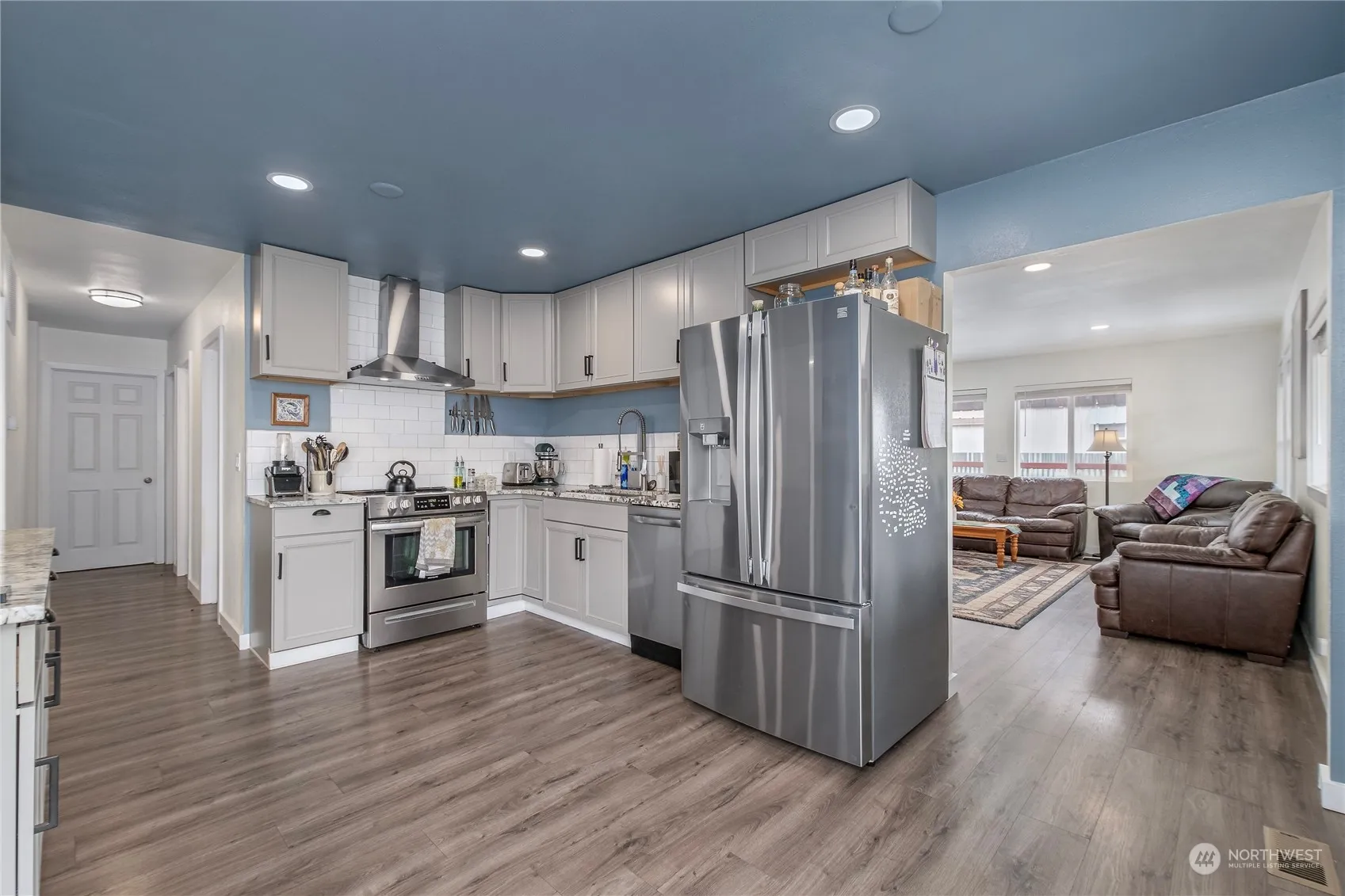 A charming single level FOUR bedroom home full of modern updates! Conveniently located just one block from Lincoln Park, 3 min drive to Confluence Hospital, & nearby shopping centers. As you enter the home, you are greeted by an open kitchen and dining area that is perfect for entertaining guests. The primary bedroom has a large walk-in area that could be used as a flex space/office. Lots of updates throughout, including: LVP flooring, granite countertops, high-end stainless steel appliances, 4 year-old roof, can lighting, and so much more. The huge backyard, with great views of Saddle Rock, is a blank canvas for anyone wanting a large garden or has other landscape designs in mind. This home has so much to offer; come view it today!