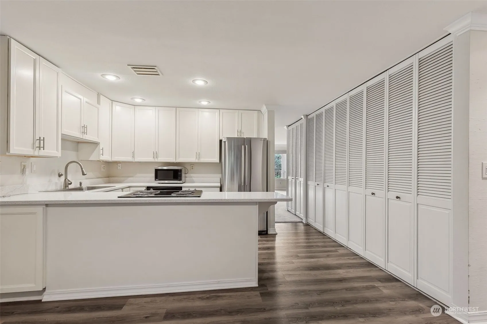 Perfect middle Island location for a large 2 bed 1.75 bath condo that feels more like a home. Over 1500 sq feet of living space with big living room, mountain views from the deck and primary bedroom, handsomely remodeled kitchen in the last 4 years, dedicated parking and storage. Eastern facing unit oversees the grounds and has a nice sized covered deck to enjoy. This home has a real dining room to go a pair of oversized bedrooms each with large closets. The Islandaire Complex features an outdoor pool, elevator, secure lobby, gorgeous grounds, covered parking, affordable HOA Dues and is located within walking distance to shops, restaurants, the farmers market and transit stations.