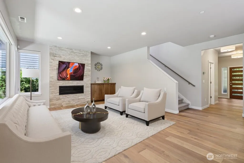 Pure elegance & sophistication, this sunny, spacious home with superb floor plan sits on a beautiful lot on a quiet, private street. Expansive main floor w/ den-office & tall windows facing south that bring in lots of natural light. Stunning chefs’ kitchen w/ large pantry, all Bertazzoni appliances, and huge waterfall island that opens to the stylish dining & living rooms. Direct access to the large, covered back patio & private, peaceful fully fenced backyard – a great place to have fun, relax & entertain! Huge family room + 4 spacious bedrooms upstairs, including the amazing primary w/ 2 large walk-ins & gorgeous 5-piece en-suite. 2-car garage. Tons of storage. AC. Easy access to highway, shopping, parks & more. The good life starts here!