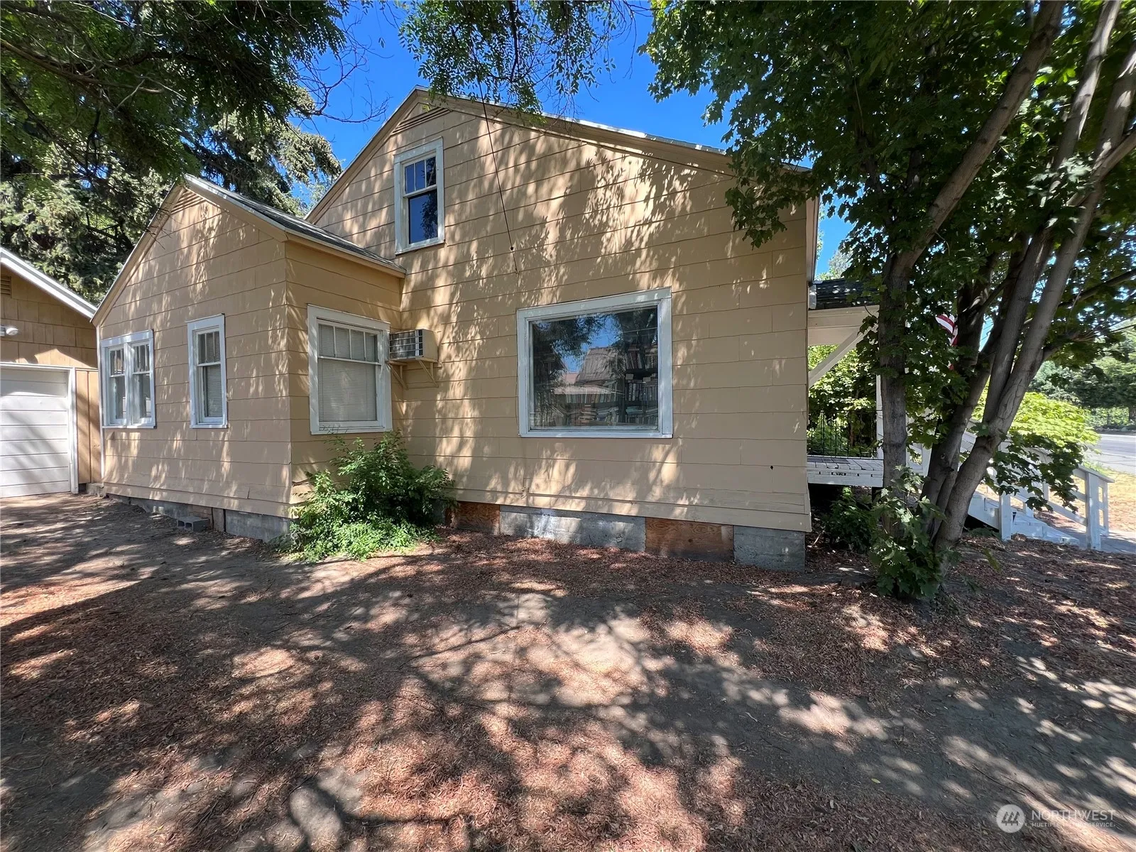 Okanogan – Turn the page on a new chapter with this 1356sqft 3+ Bedroom/1 Full Bath home! Oversized lot. Previously known for the endless stories and bookstore – this fabulous home is ready for you. Enter into the living room, wood burning fireplace, dining room w/hardwood floors, kitchen with cabinets, full bathroom w/tile, laundry room/mudroom with separate entry to back yard and detached garage, two bedrooms w/deep closets on main level. Built ins throughout entire home. Upper level has additional bedroom, and bonus room w/cedar panels. Basement has utility room & extra storage space. Detached 224sqft Garage. Alta Vista Irrigation. $239,900 MLS-2272186/H-3579