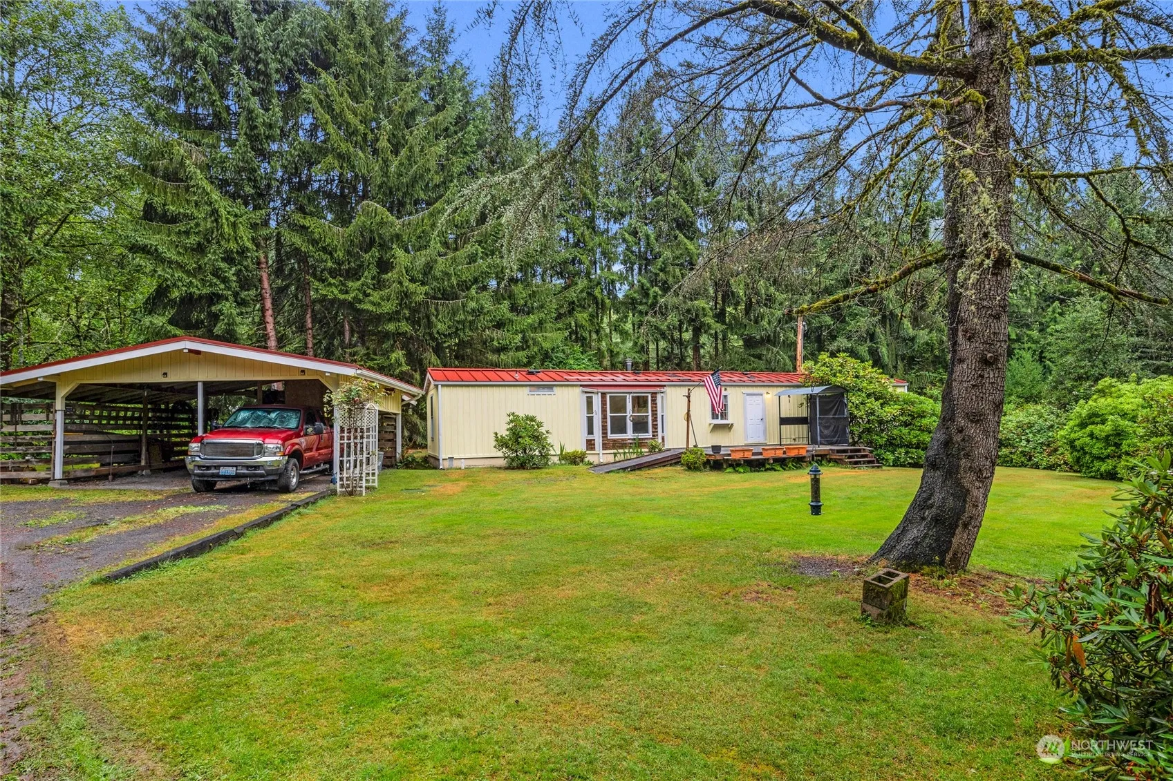 Opportunity awaits with this 2 bed 2 bath home on a 5 acre lot with 344′ of High Bank Stillaguamish RIVERFRONT! FRESH INTERIOR & EXTERIOR PAINT. Large living room with pellet free standing fireplace. Spacious kitchen with plenty of cabinet and counter space + all appliances stay. Detached carport to park 2 vehicles under. Another shed/outbuilding for extra storage. Whole house generator for when the power goes out. Private and level with room to build a shop! Could use new carpet inside. Country living yet 15 minutes to town. Very private and secluded. Make this Home Sweet Home! Why rent when you can own?