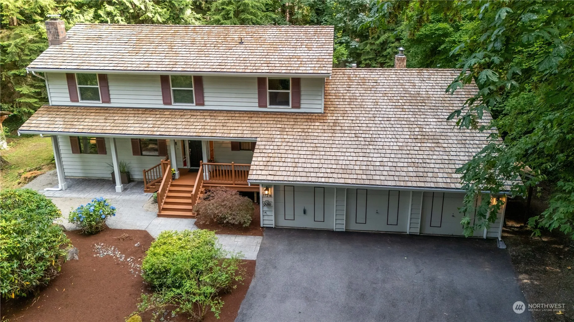Amazingly updated 2-Story with a long paved treelined driveway, in a beautiful private wooded setting. 4 bedrooms, 2.5 bath, plus sun room with spa and main floor den and craft room. Dream kitchen features Wolf dual-fuel range, stainless appliances and more. Eating space, breakfast bar and family room off kitchen. 2 wood burning fireplaces, forced air gas heat and heat pump-A/C to keep you cool in the summer. Gleaming hardwoods. Fresh paint & new carpet throughout. 3-Car garage with loft storage. Large multi-level deck. Lots of privacy and room to play on 1.42 acres. Located at the end of a quiet neighborhood. Cottage Lake Park just blocks away. Convenient to shopping. Close to Wine Country. Northshore schools. Pre-inspected. 5 stars!!!