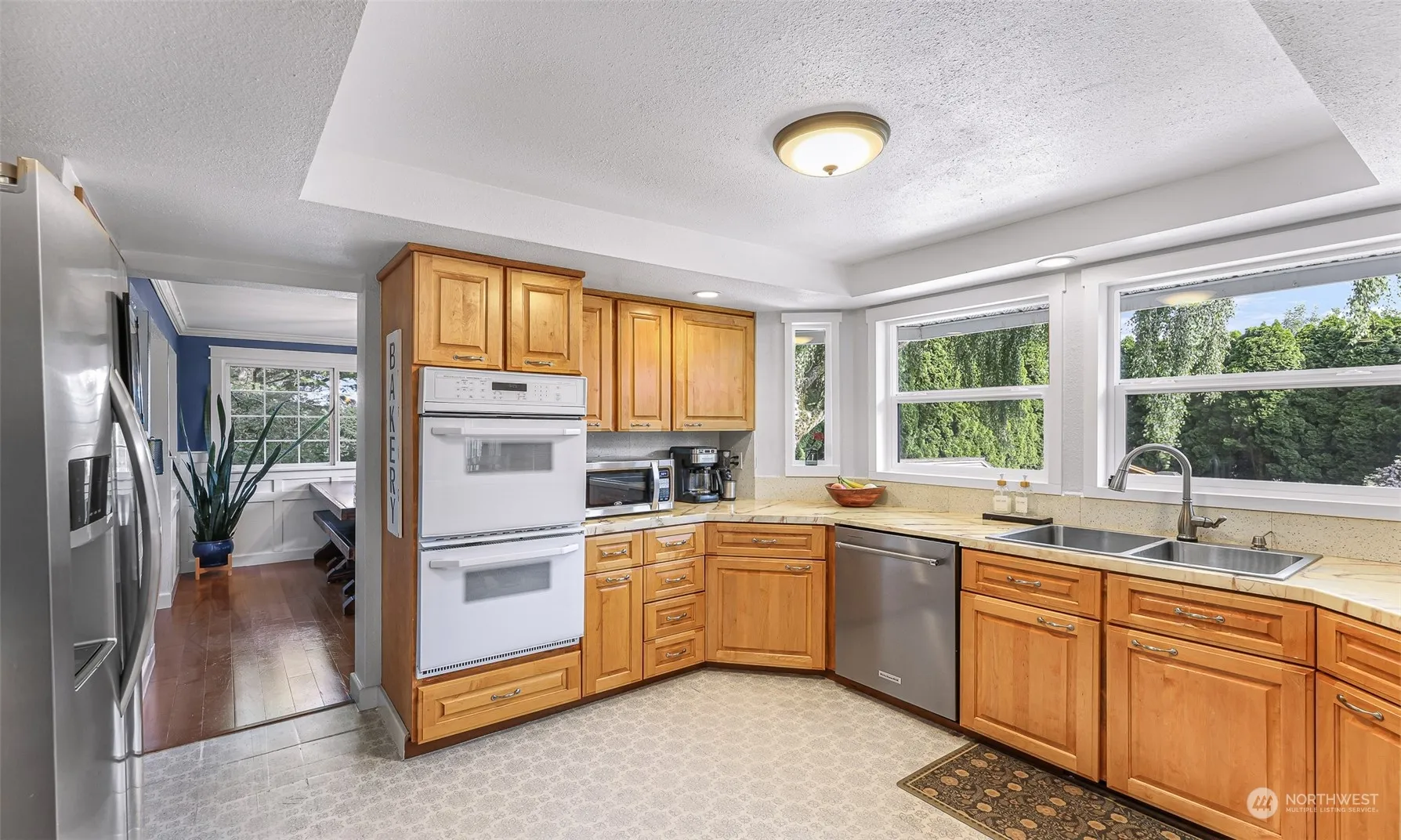 Charming home in quiet cul-de-sac. This move-in ready home offers 4 bedrooms, 2.5 bathrooms, 2 living rooms, and bonus room perfect for a home office, playroom, gym, etc. Well maintained interior includes an updated primary bathroom and new trim throughout. French doors off living room lead to the expansive, private back yard, making it an ideal sanctuary for relaxation and recreation. Recent upgrades include a new roof, gutters w/ leaf guards, insulated garage door, and vinyl windows. Located in the heart of Ferndale, enjoy close proximity to schools, parks, shopping & dining. New city road improvements provide quick & easy I-5 access, 15 min to Bellingham & Canadian border.