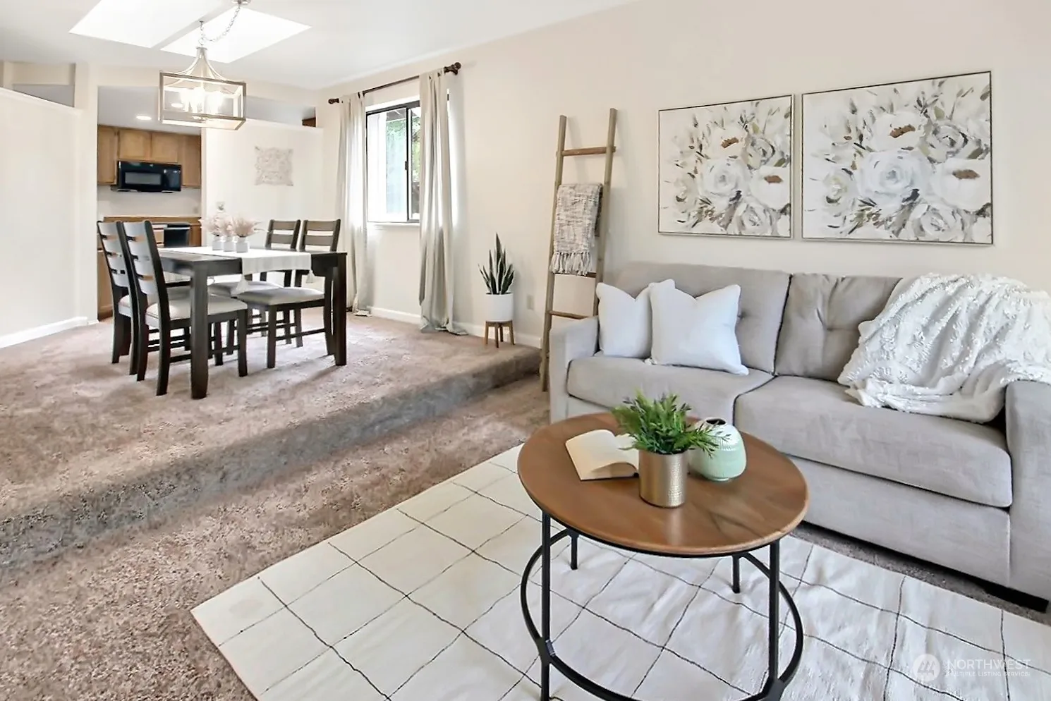 This adorable move-in ready rambler offers everything you desire. Freshly painted throughout, the light-filled living & dining rooms create an inviting ambiance. The open concept kitchen, with eating space, flows into a warm family room & an office nook. Retreat to the spacious owner’s suite featuring a newly remodeled bathroom and walk-in closet. The updated 2nd bathroom boasts new flooring, lighting, & vanity. Step into your private backyard paradise, a lush oasis with mature landscaping. Enjoy the backyard shed, gardening area, and space for RV parking. Discover the neighborhood’s private lake park with a community building, playset, beach, and dock, all within the sought-after Tahoma school district. Don’t miss out on this one!