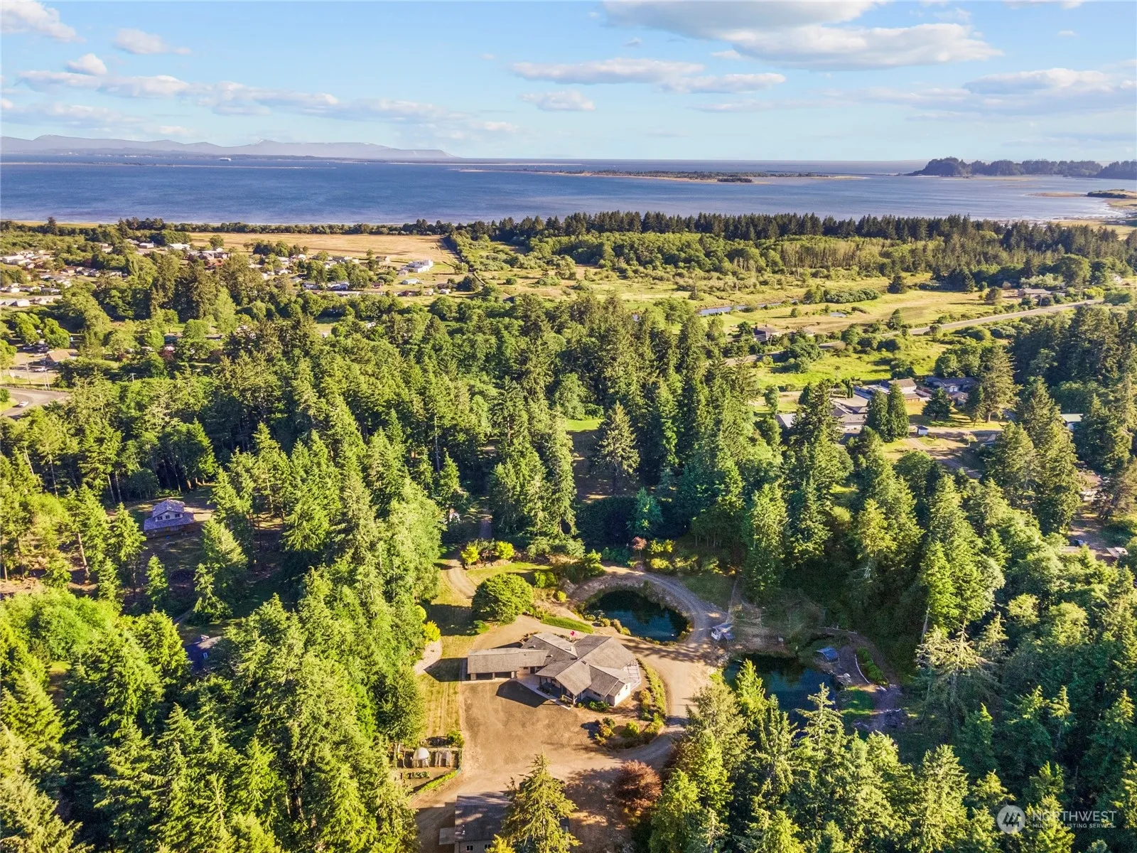 LIVE YOUR BEST LIFE ON WA’s COAST! This is the ultimate single-story custom home on 4.28 private acres. The LB Peninsula offers 28 miles of beaches, state parks, lakes, lighthouses, Willapa Bay, Columbia River, charming restaurants/specialty shops plus it’s just a short drive to sales tax-free big box shopping in Oregon. This stunning rambler was built in 2010 & offers 3550 sq ft w/ground floor 704 sq ft apt. adjacent to the 32′ x 60′ workshop + storage rm. Inside, a wall of windows boast views of the park-like grounds featuring two ponds which attract beautiful waterfowl. Interior highlights include a true chef’s kitchen, private primary suite w/jetted tub, huge mudroom/laundry rm, elegant home office & 2 guest bdrns w/ensuite baths.