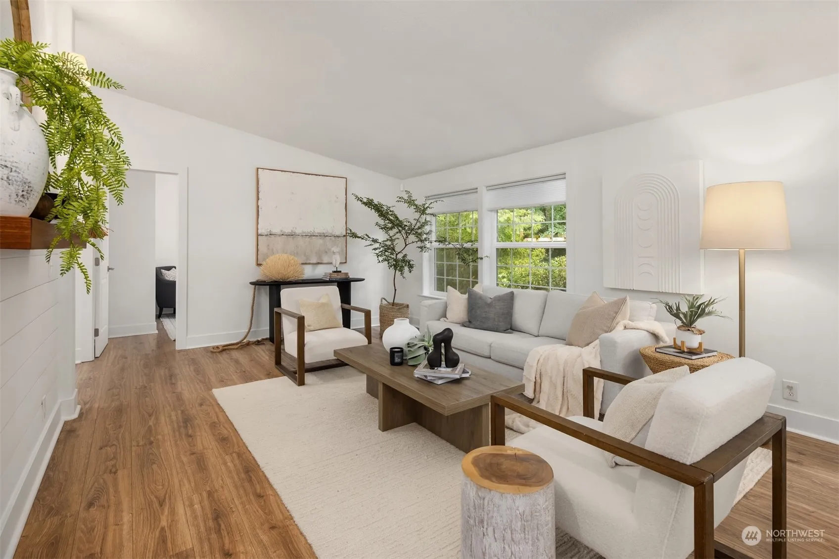 An elegantly remodeled home in a prime location, this gem is an oasis close to schools, shopping & ferry.Every inch has been tastefully updated w/an eye for design.3 bedrooms, an office/flex space & full bathroom including a GORGEOUS primary suite to call your sanctuary. Spacious living areas give everyone room to spread out. Kitchen & laundry room have been updated w new cabinetry, appliances & flooring. Outside, the lot is level, fully fenced & private, w/plenty of room for gardening, pets & outdoor play.Beautiful front deck & lovely patio at the back of the house offer great outdoor relaxation/entertaining space. 2-car detached garage has room for a shop or extra storage. A great opportunity to live close to town in a peaceful setting!