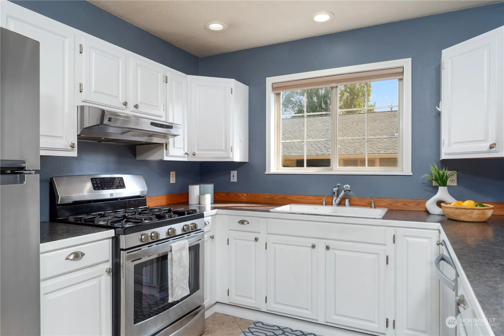 Single level 3/2 home with an open floorplan ideal for entertaining. Spacious kitchen with heated tile floor, stainless appliances, lots of storage & breakfast bar seating that opens to a great room with a cozy propane stove. Slider to the backyard with covered patio & BBQ cooking station will be enjoyed all year. This is the ideal outdoor entertaining deck & it’s on the west side of the house, perfect for that late afternoon sun. The large yard is fully fenced & includes espaliered fruit trees, a firepit, storage shed & lots of space for gardening or play. Centrally located close to shopping, hospital, elementary school & bus line. Plus an RV parking space along side the 2 car attached garage. There is so much to love here!