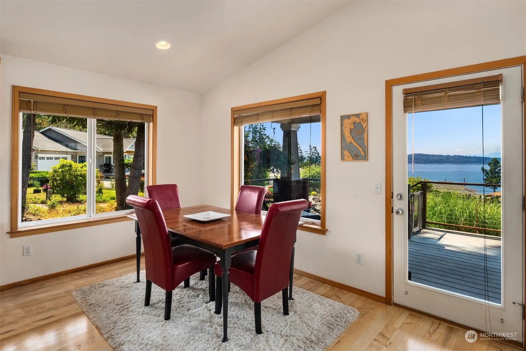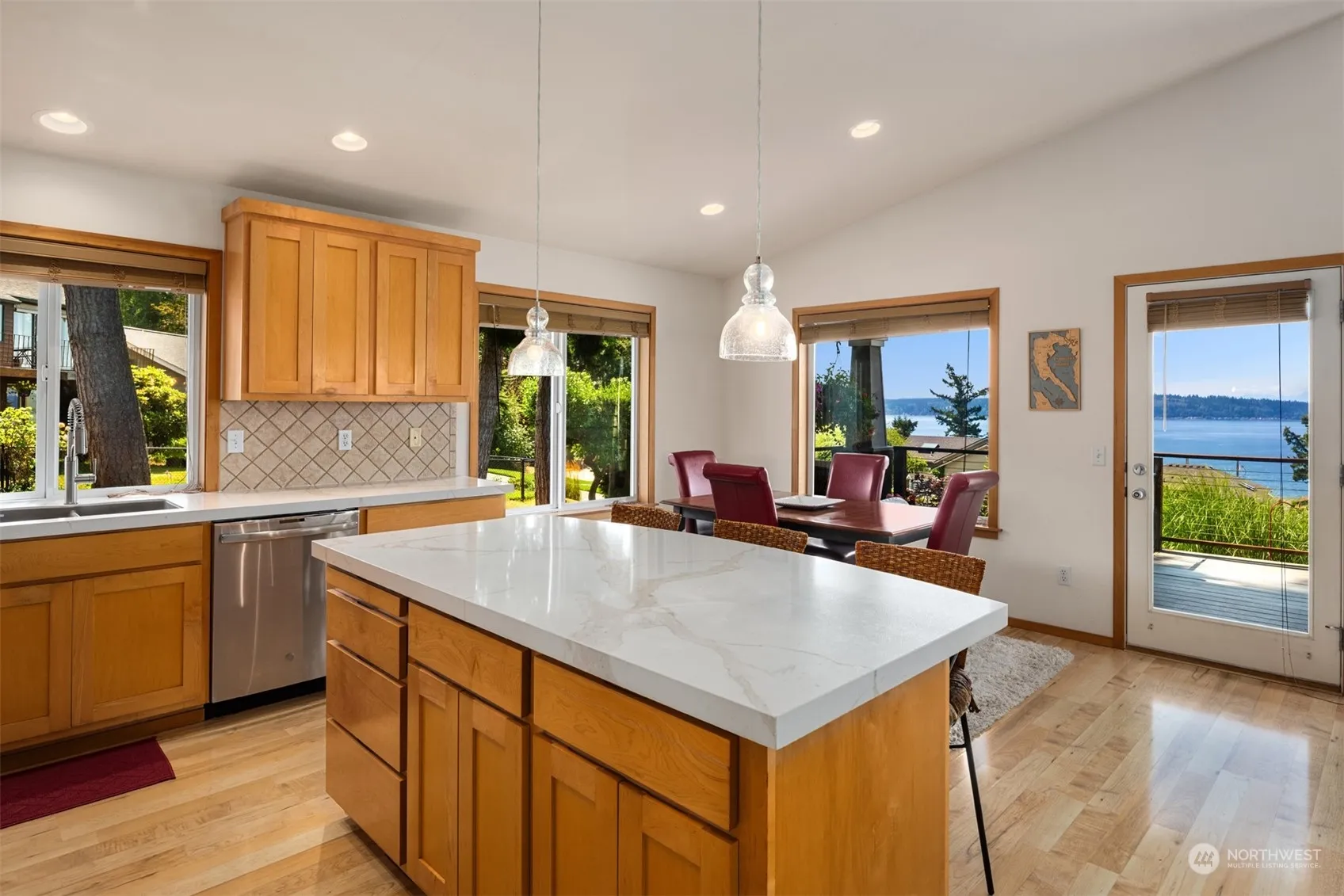 [CAMANO SHORES RAMBLER W/ BREATHTAKING WATER VIEWS] Encased in large windows showcasing panoramic WEST FACING VIEWS of the Saratoga Passage, Mt Ranier & Olympic Mountains. From the expansive deck enjoy watching nature’s entertainment, from bird watching to the majestic sea life, perfect for relaxing & entertaining. Inside you will find open concept living; the beautiful kitchen boasts a huge island, quartz slab counter tops & updated appliances including gas range. 3 large bedrooms to unwind in, both bathrooms have been elegantly updated. The back yard is fully enclosed in iron rod fencing, & an outbuilding for storage & lawn tools. Just a short walk to the COMMUNITY BEACH, easy paddle board access! Your very own slice of paradise!