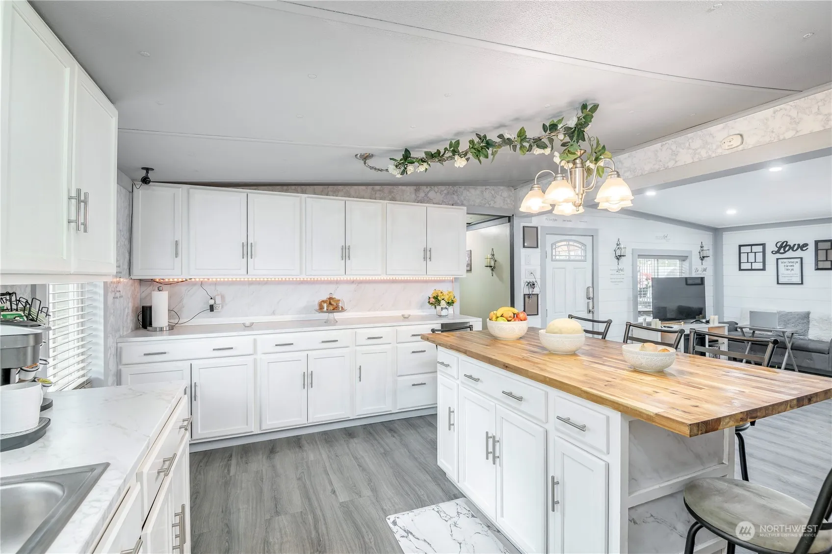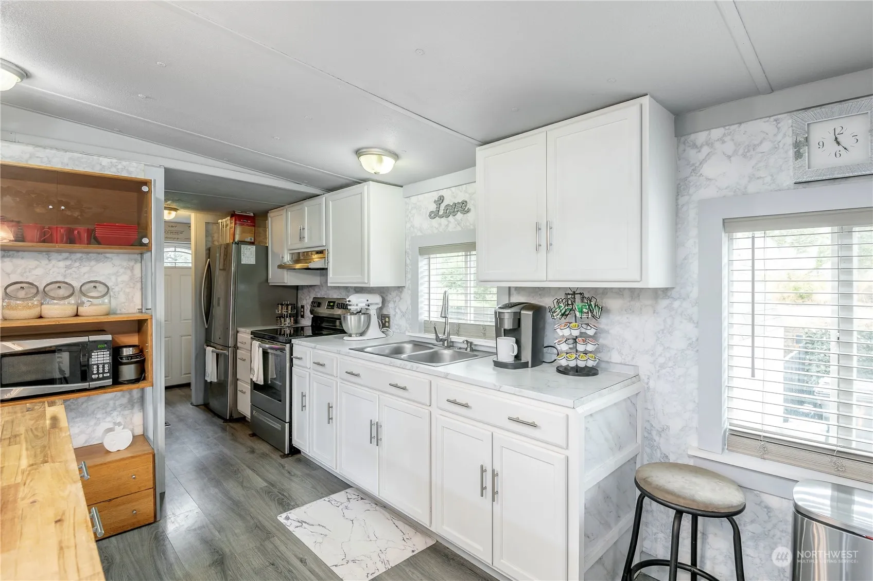 Don’t miss out on this beautifully remodeled, move in ready, almost 1200 square foot manufactured home on a large lot! Home is 3 bedrooms, 2 bath with an open concept kitchen and living area. Oversized Island w/ seating, along with an abundance of cabinets and storage throughout the kitchen. Cute utility room with washer/dryer, folding counter and shelving. All appliances stay!!! New interior paint, cabinets, lighting/fixtures, doors and flooring. Less than 5 year old roof. HVAC/AC and water heater are 2 years old. This spacious level lot has multiple outbuildings, 12×12 detached studio w/ electrical, fruit trees, garden space and a pond with almost 30 fish. A Commuters Dream!! Easy access to freeways, shopping, parks and schools.