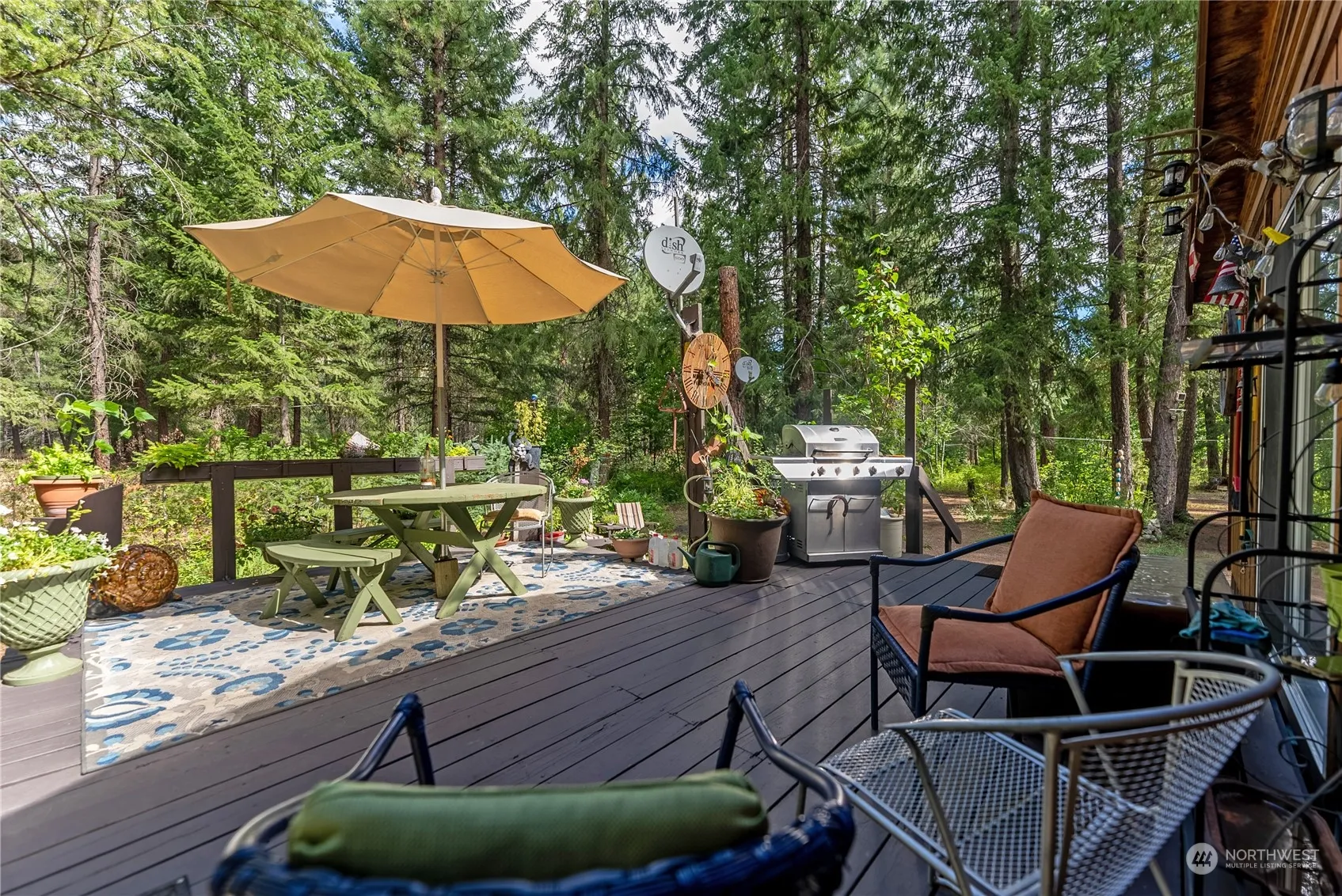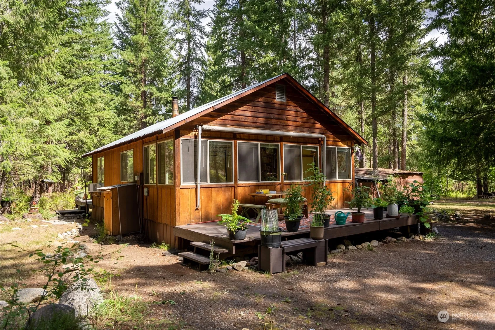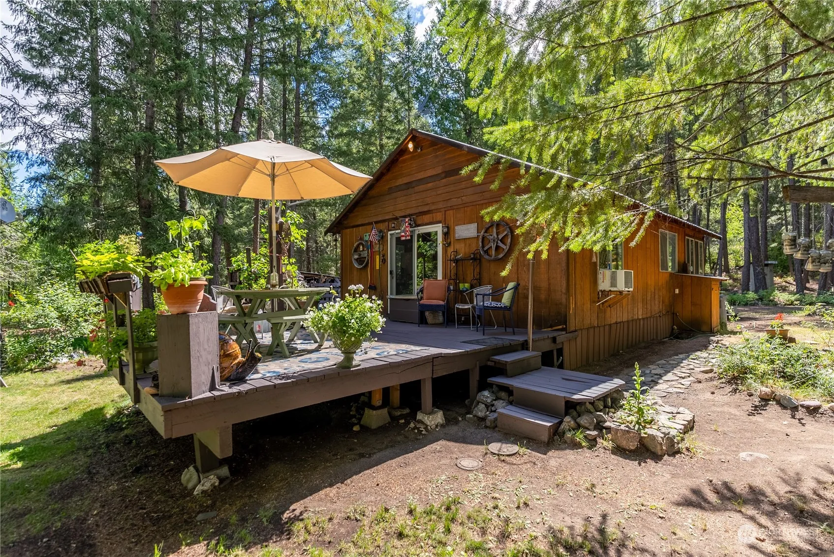 Escape to this charming turn-key cabin nestled in 2.08 acres of forested land. Embrace the serenity and inviting ambiance of this retreat, offering two bedrooms, vaulted ceilings, pine paneling, laminate flooring, and a lovely butcher block island. During the winter, cozy up to the wood stove, and in the summer months, delight in the surrounding nature from the multiple decks. With a bunk house and several RV spots, this cabin is well-equipped for hosting guests. Additionally, a versatile shop/barn with extra bunk space or storage adds convenience. Situated near ample public land, this picturesque property offers the opportunity to possess your private piece of paradise. Don’t miss out on this idyllic retreat!