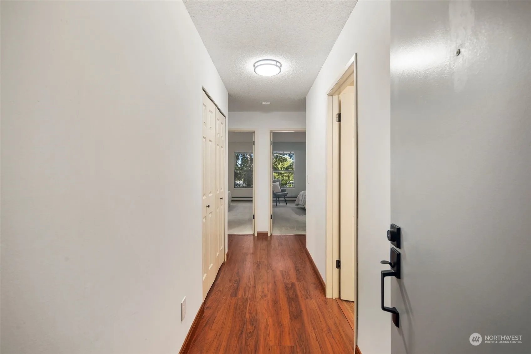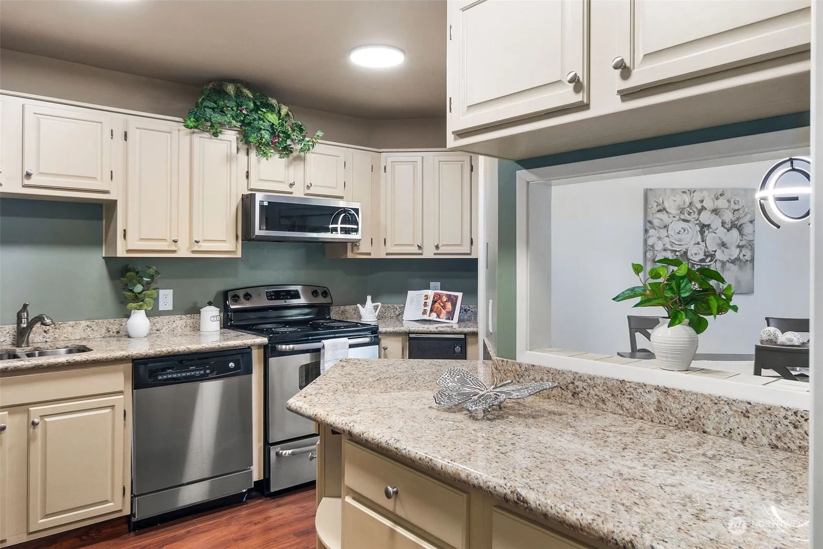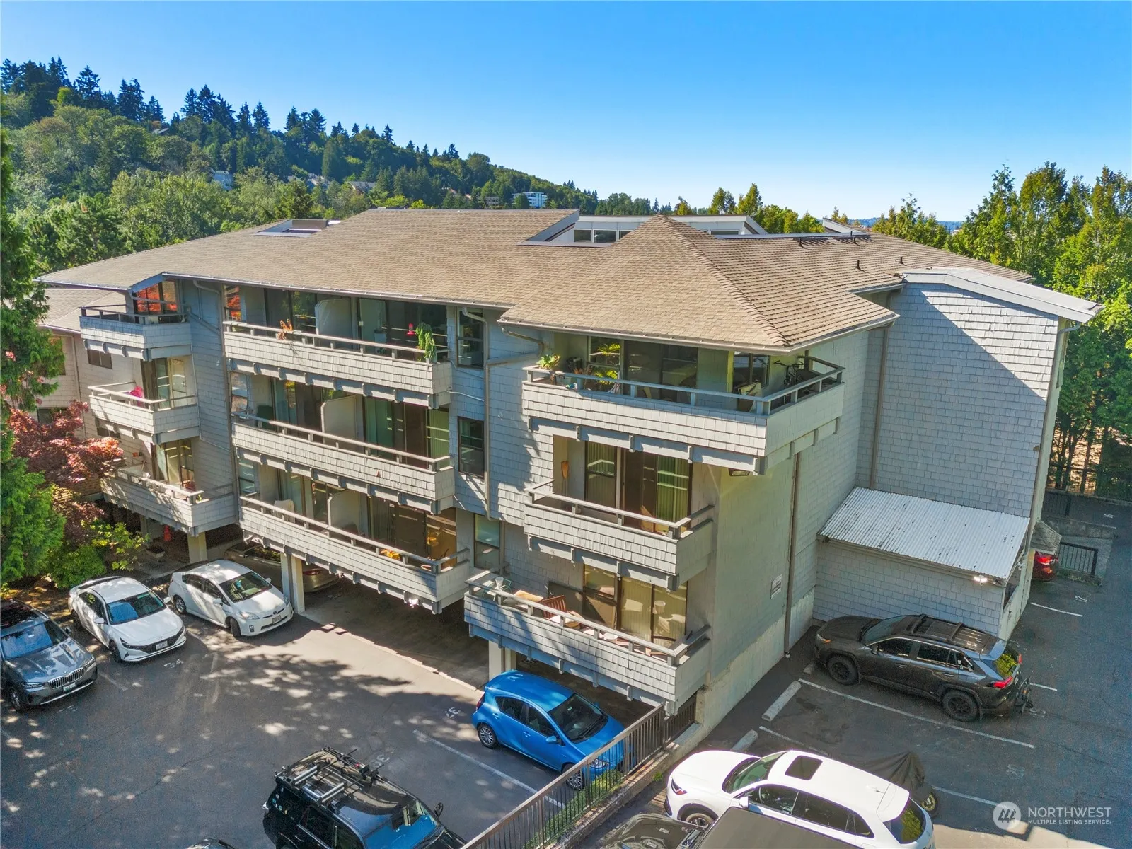 Updated spacious 2 bedroom condo with easy main floor access, no stairs, walk in the secure front entrance to the best location in the building (see 3d tour) With a spacious layout, light-filled living room and oversized sliding glass doors to your large private deck. The modern kitchen boasts high end granite countertops, extra cabinet space and newer stainless appliances. This home has a primary bedroom featuring walk-in closet and 1/2 ensuite bathroom. A large second bedroom and full bath with new fixtures and quartz countertops! The unit also has an IN UNIT W/D and a storage space just down the hall. Fantastic opportunity to live minutes from shops, parks, and restaurants. Quick commute to Bellevue and Seattle!