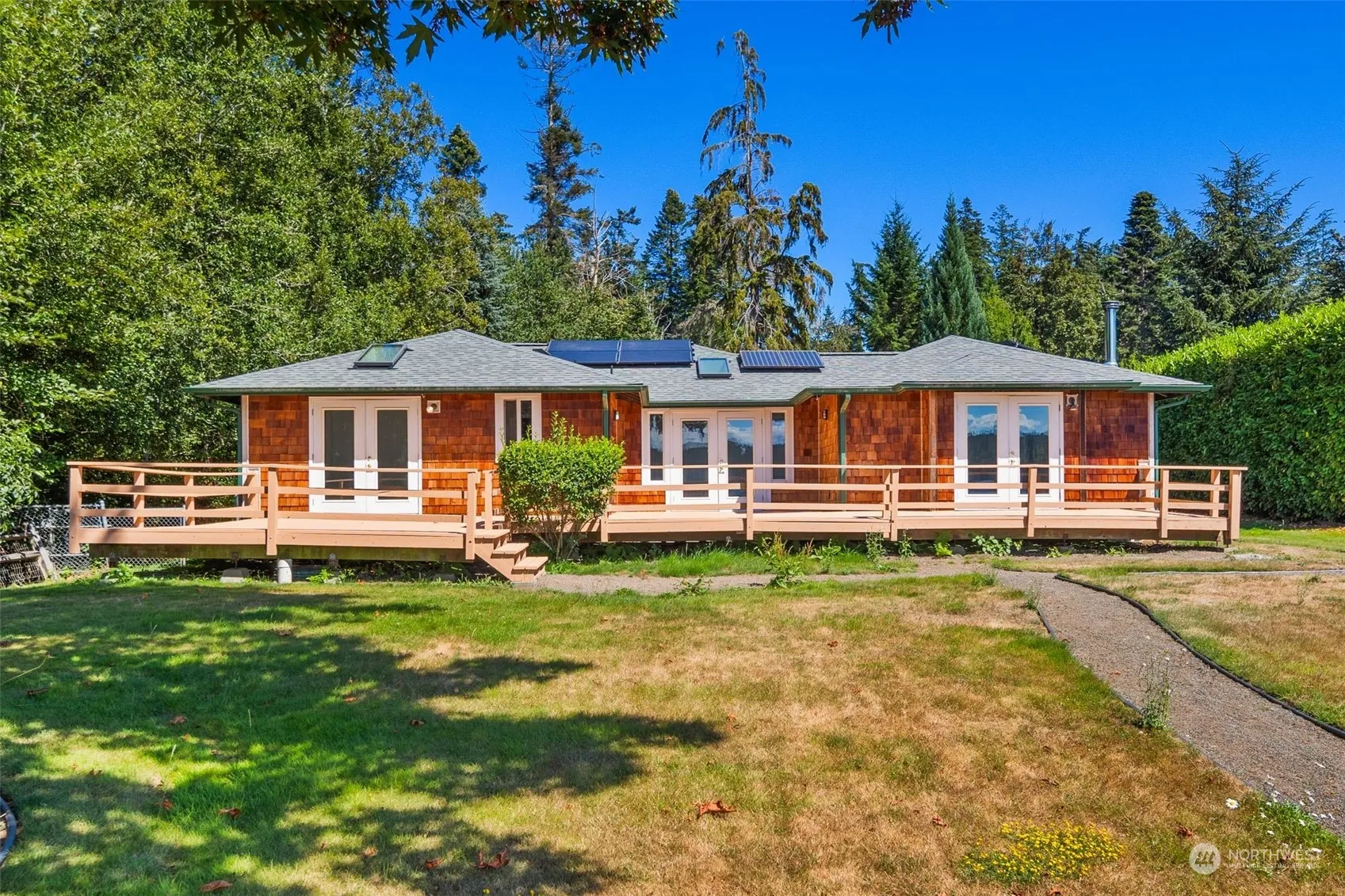 Experience 100 feet of high-bank waterfront living on Port Gamble Bay! This charming and cozy rambler, situated on more than an acre and a half, awaits its next caretaker. The home is well-maintained, featuring beautiful landscaping, stunning views, and serene peace and privacy. Recently remodeled, this property boasts solar electricity, a generator, a tankless water heater, ramp access, and a huge lot. It is conveniently located and provides easy access to Port Gamble, just 10 minutes from downtown Kingston and the ferry terminal!