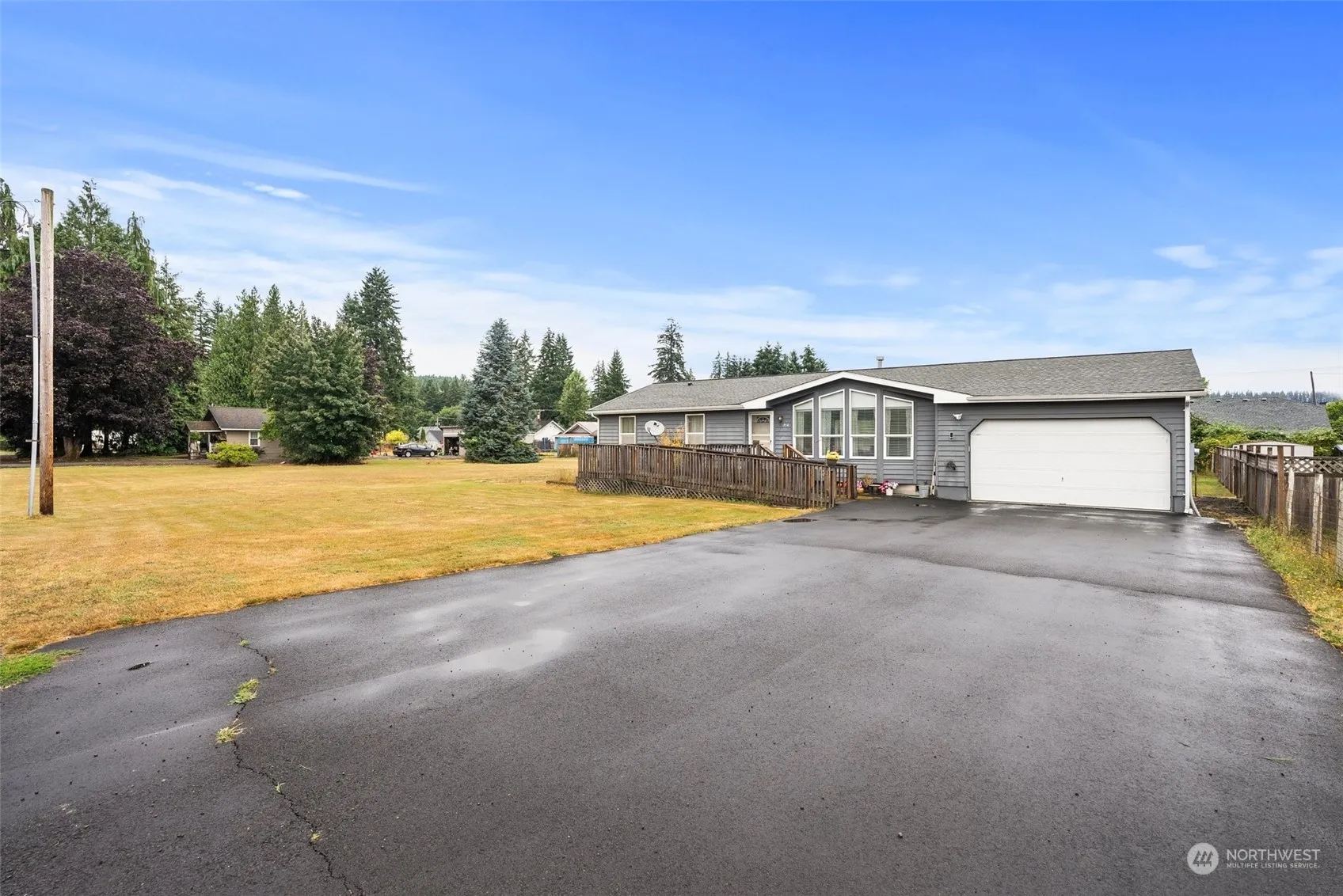 Welcome to your new home in the charming town of Pe Ell, WA featuring a large double lot! The front deck, complete with a ramp, provides easy access and a welcoming entrance. Inside, ample natural light streams through the windows, creating a warm and inviting atmosphere. The living room boasts a cozy wood stove, ideal for chilly evenings. Enjoy meals in the separate dining room, which includes built-in storage for your convenience. The spacious kitchen is perfect for cooking and entertaining. The bathroom boasts a soaking tub and a large walk-in shower. This beautiful property features a detached shed and a fenced backyard, perfect for gardening or outdoor activities. The attached two-car garage offers plenty of storage space.