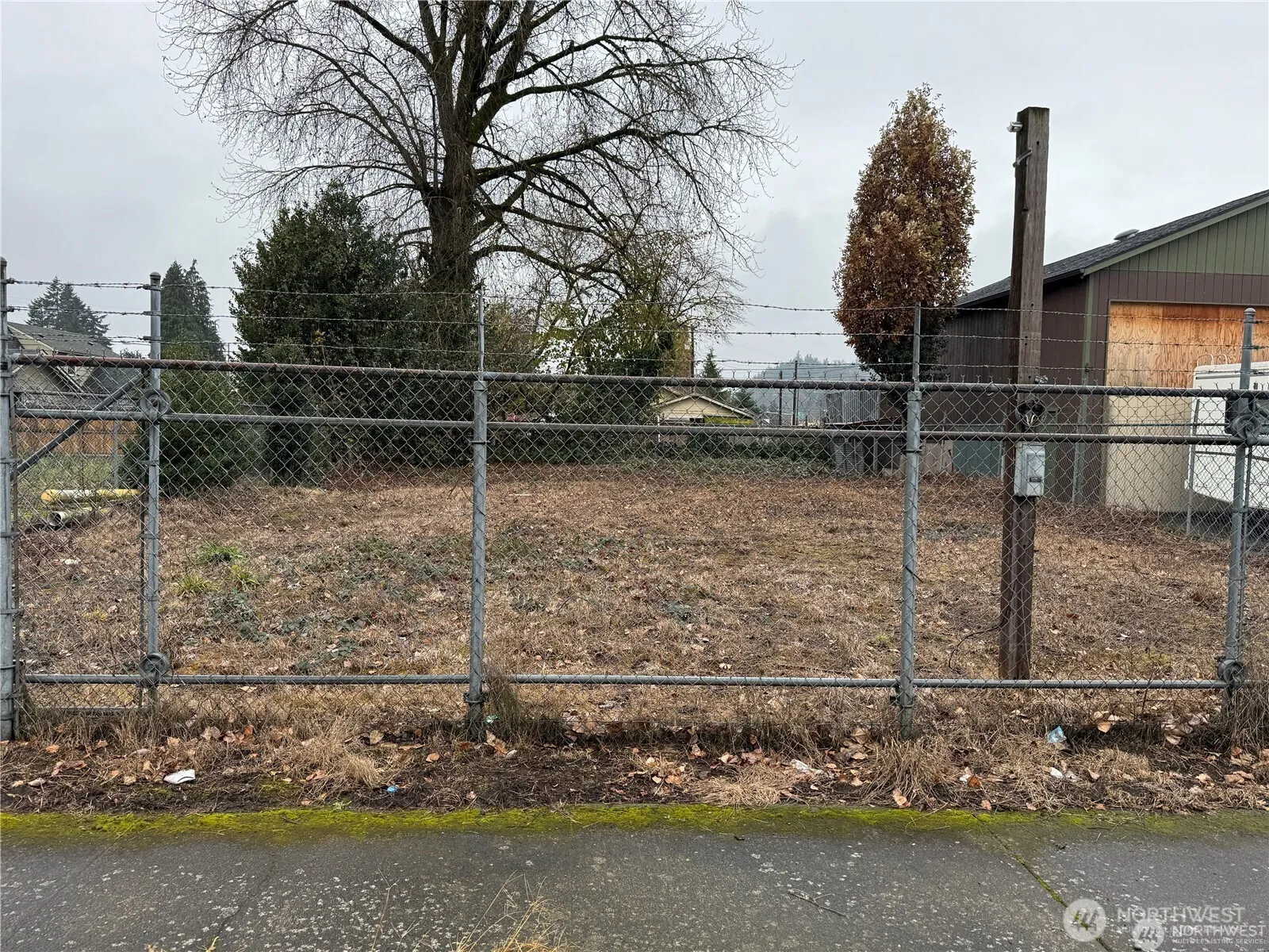 Flat and fully fenced lot in town. Power, water, and sewer on the lot. Buyer to verify connections.