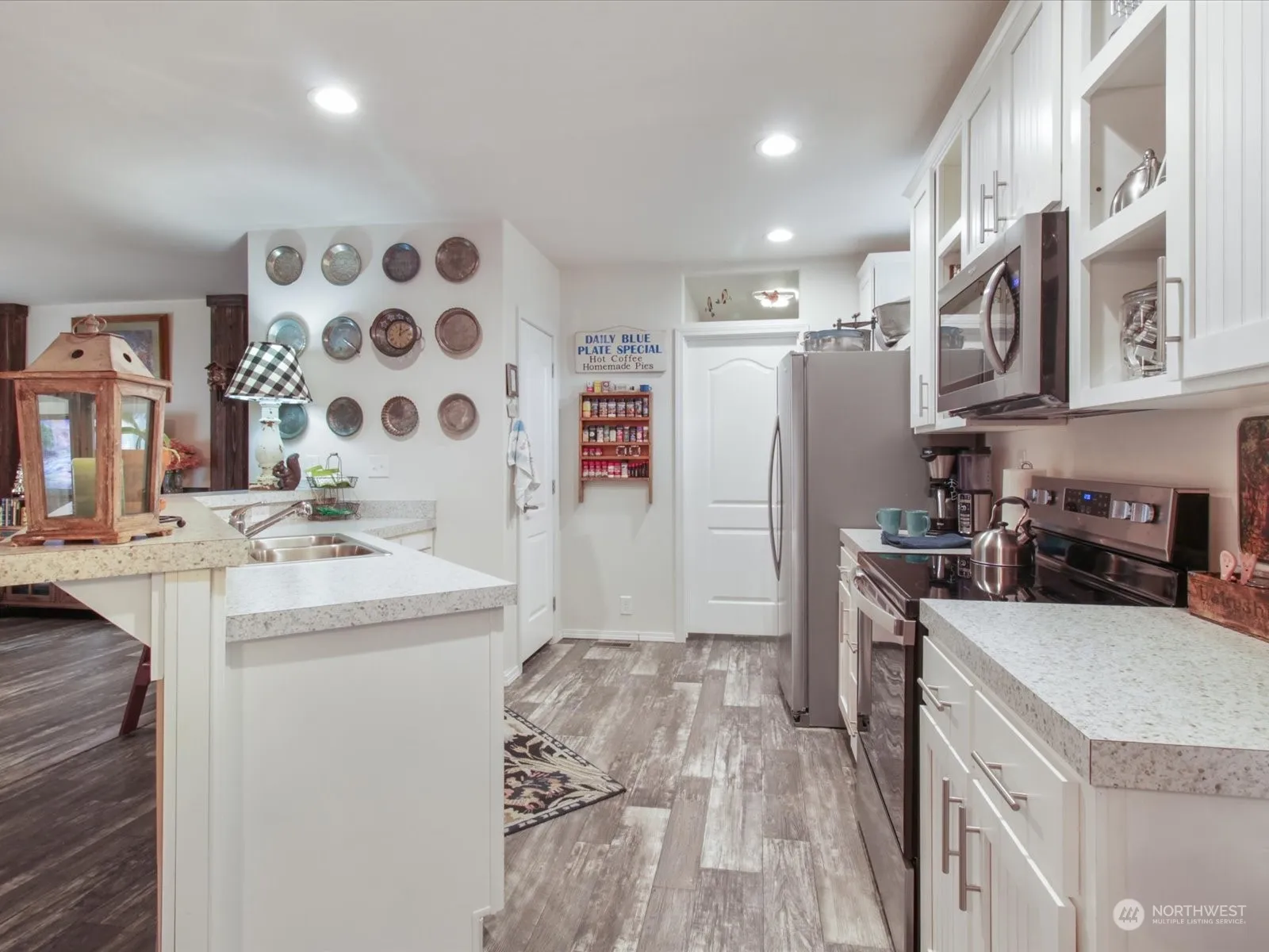 Like-new, 2023-built home nestled in beautiful, Gold Bar. Offering 3 bedrooms and 2 full baths across 1,248 sqft. Ideal open floor plan with 8.5′ ceilings and clerestory windows. Lot rent is $875 for this turn-key home. The home features a stylish bright white & grey color palette complemented by bead board wainscoting and white wood valances. The primary bedroom and its en-suite bath, double vanity, and WIC ensure a comfortable private retreat. The kitchen shines with white cabinetry, silver hardware and SS appliances. Outdoors, the covered deck invites you to unwind rain or shine with greenbelts on two sides contributing to a tranquil-like experience. New gutters and 8×10 shed. 10 min to Wallace Falls St Park and 13 miles to Monroe.