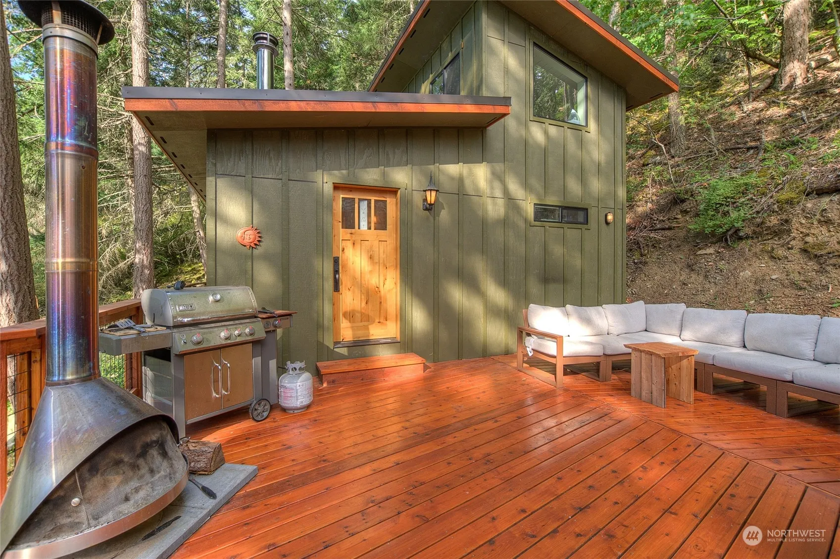 Conveniently located halfway between the Orcas Village ferry & Eastsound, this stunning 21.77-acre estate offers a one-of-a-kind octagonal 700 sqft 1 bd/1 ba main house w/large deck & adjoining bunk house, perfect for guests or additional living space. The property also has a separate access road to a lower lot & tiny home office w/an incinerating toilet. There are 2 water systems, & much of the property has underground utilities available for additional improvements including the garden, lower lot, & main house site. With end-of-road privacy, several rocky view knolls, incredible views to the northeast and south, and nearly 2,000 ft boundary adjoining Turtleback Preserve with easy access to hiking trails, this is a nature lover’s paradise.