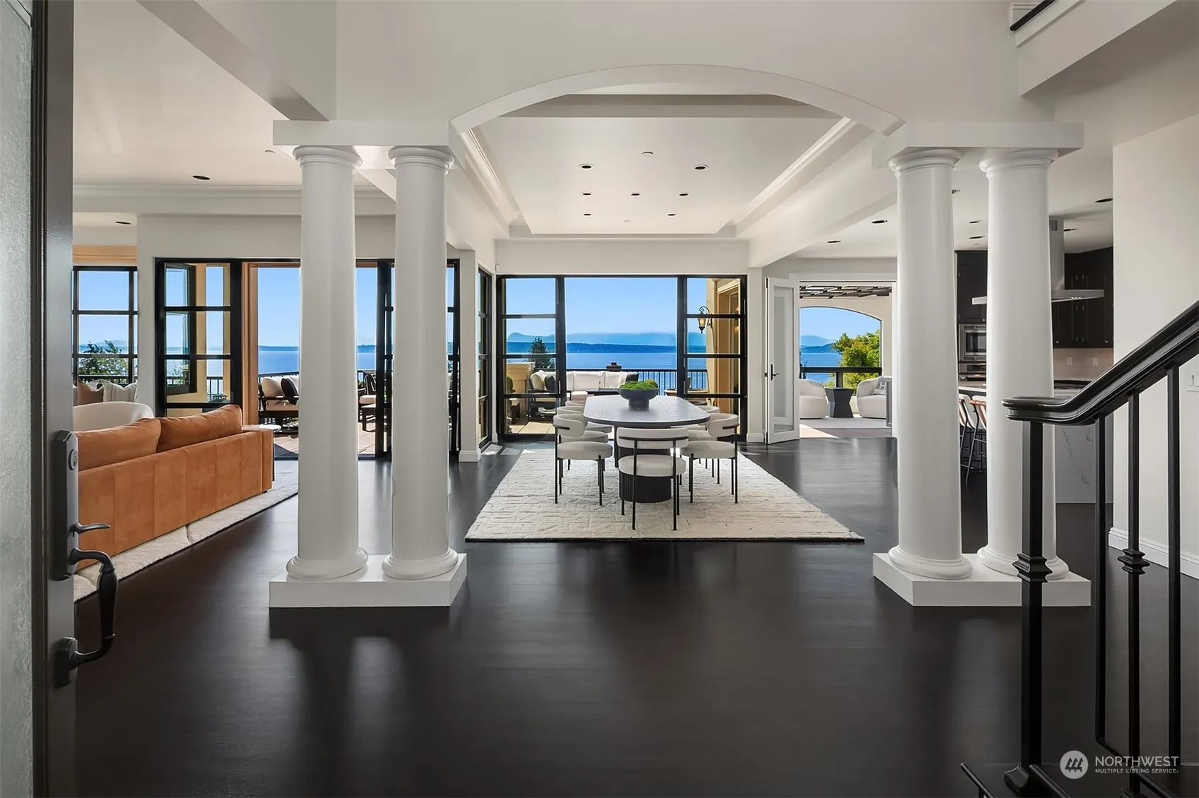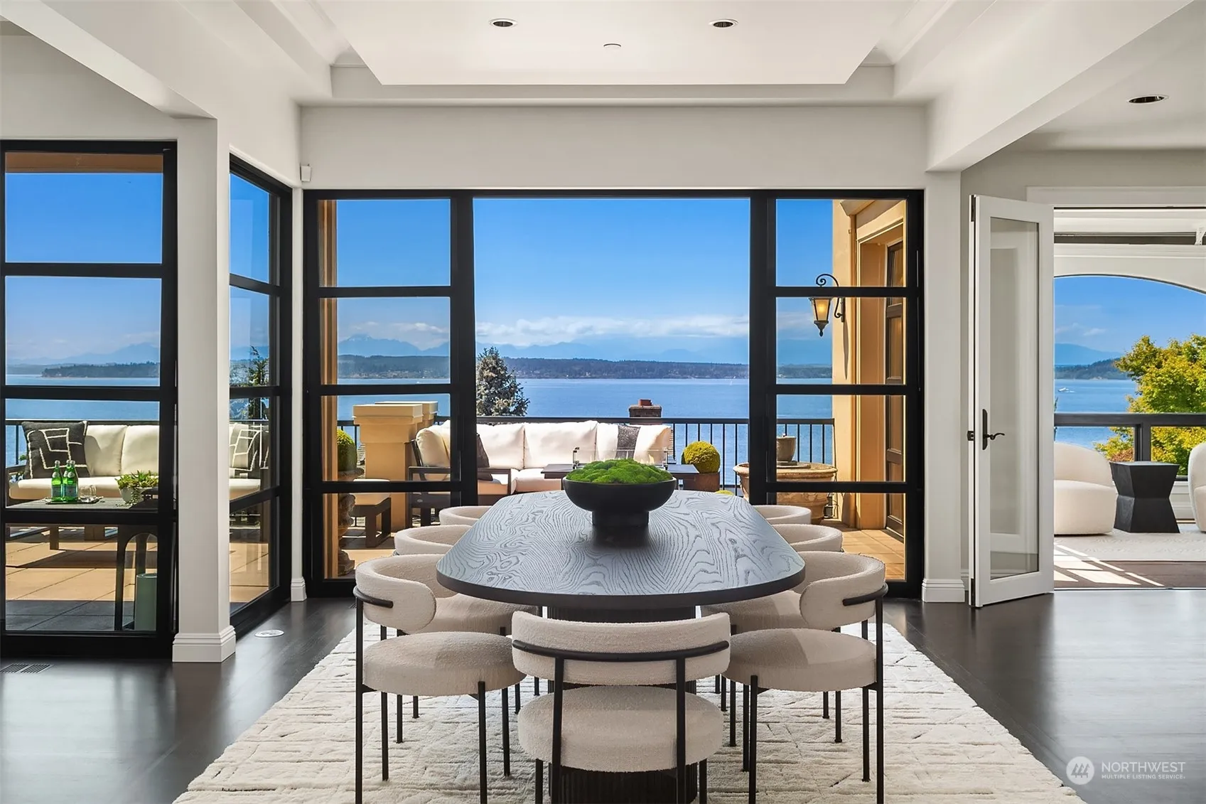 A gated entry to a Grand Estate set just above picturesque Puget Sound with Panoramic views of the Olympic mountains and sparkling Sound. Custom built with exquisite attention to detail & beautifully updated in a 2024 remodel with high-end finishes throughout. Wall to wall windows, sliding glass doors, and a fabulous expansive deck create a truly one of a kind seamless indoor outdoor entertainers paradise. Gracious living spaces showcase a Primary Suite Retreat with a private view balcony. Gourmet Kitchen featuring new quartz countertops flows into expansive Great Room and open concept Dining Room. Gated, fenced & surrounded by mature landscaping to ensure privacy on a spacious 15,444 sq ft lot. Enjoy year round PNW serene Sunset Views.