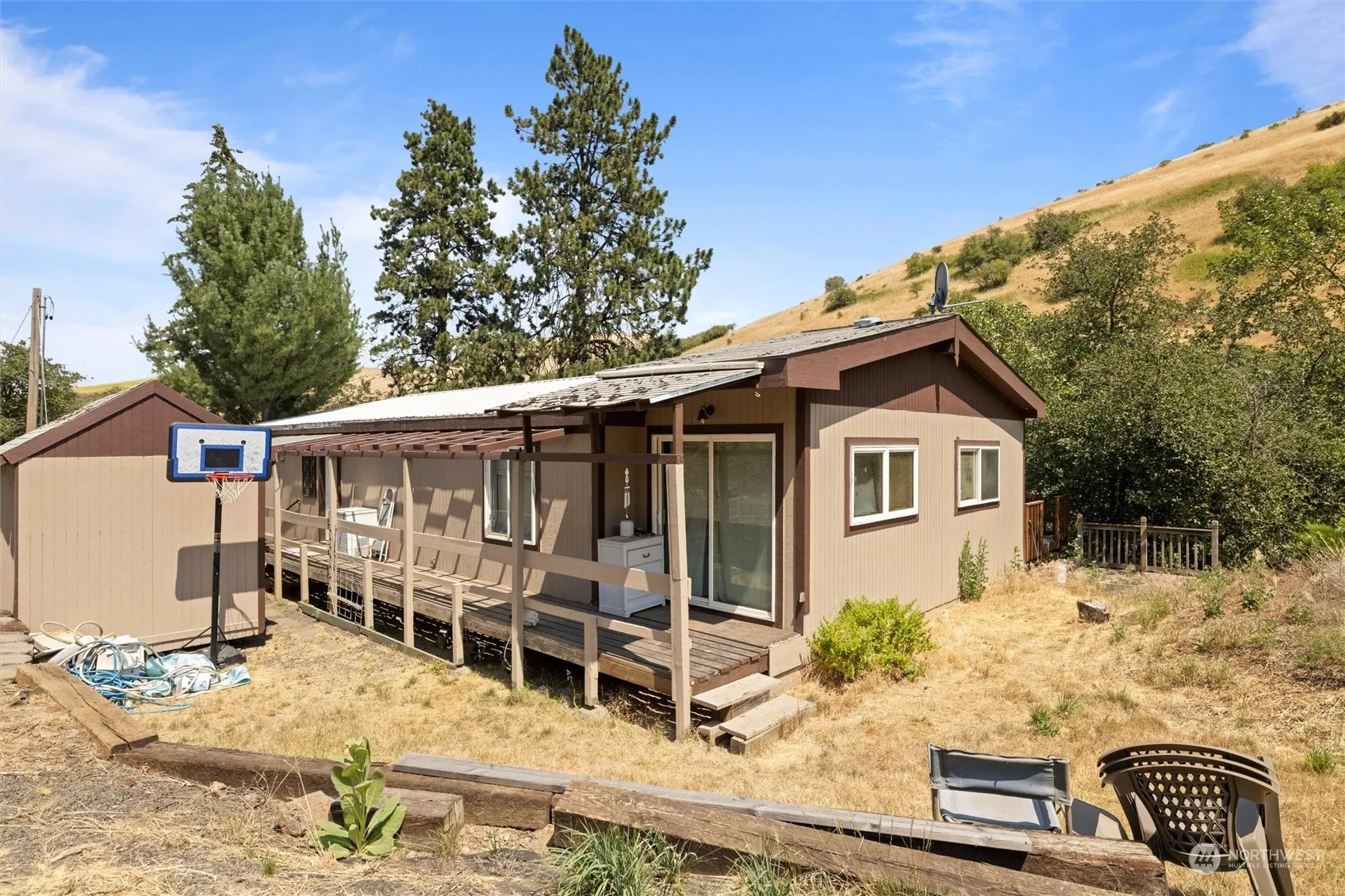 Discover this beautiful 16.4 acre scenic property just outside of Dixie and just minutes from downtown Walla Walla or Waitsburg! This 2+ bedroom, 2 bath home features an open floor plan with vaulted ceilings plus a den/office. Primary suite has a nice step-in shower. The spacious kitchen features convenient open access to the dining area off the great room and easy access to the laundry room. Large windows provide lots of natural light and views of the surrounding property and hillside or enjoy from the expansive deck. Deer, elk, bear, turkeys & other wildlife in the area. The property has 2 sheds (10×12 & 15×20), a sturdy metal 2 stall carport to keep your vehicles covered and ample RV/trailer parking down the back driveway. Welcome home!
