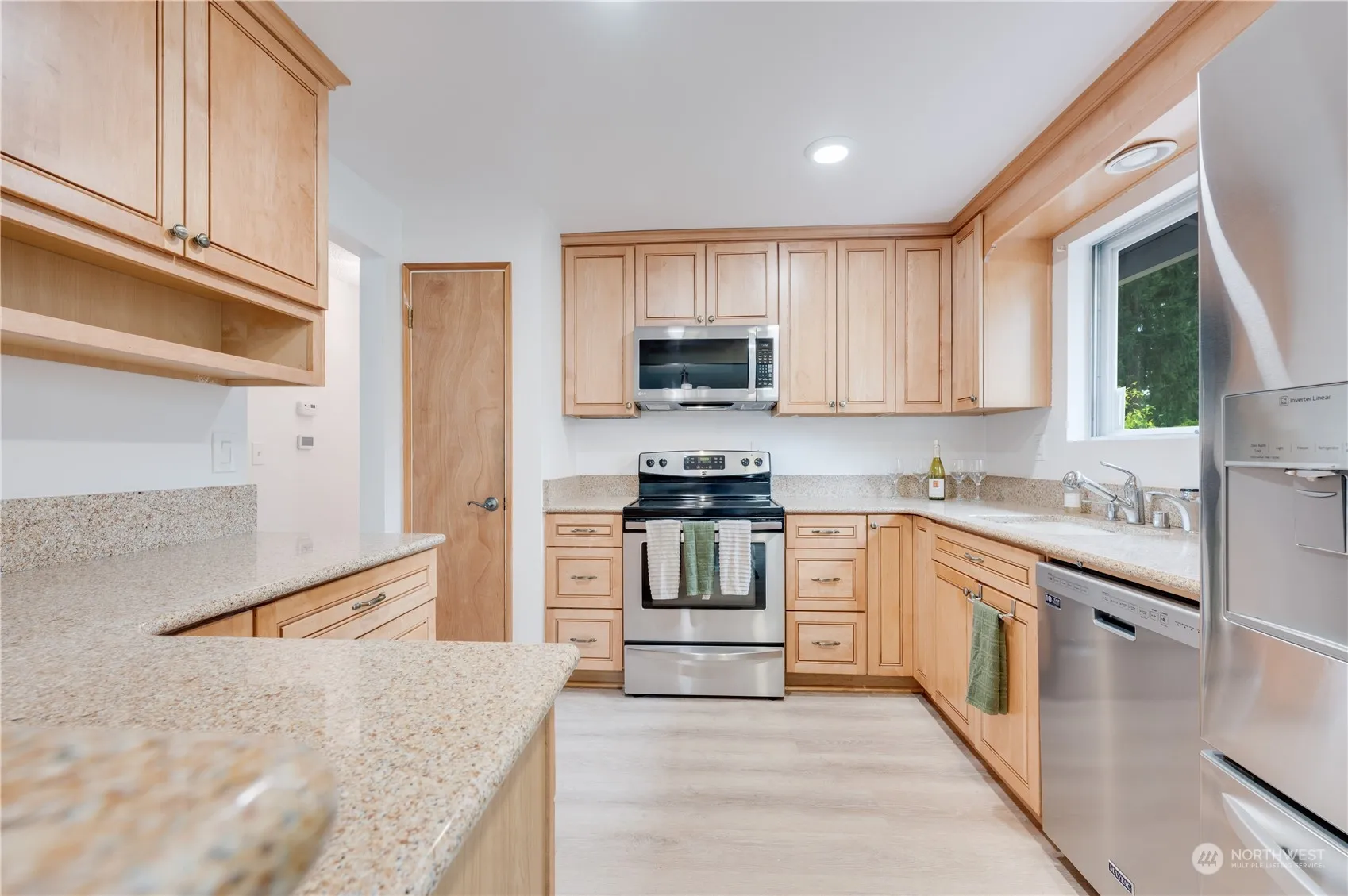 Beautiful three bedroom rambler investment, starter or downsizer home in downtown Covington! OPen floor plan with new LVP floors throughout and new carpet in bedrooms, fresh interior paint, gas fireplace, and lots of natural light. New bath and surround in the already updated main bath. Updated granite kitchen with SS appliances and instant hot. Well maintained 3nd owner home on shy 1/4 acre lot with mature terraced backyard. Extensive planting areas and sweeping territorial views, with shed and fully fenced back yard. Drought resistant front yard with oversized patio, leafguard gutters and lots of extra parking. Walk to shopping and services or just blocks from access to WA_18 and WA-516. Welcome home!