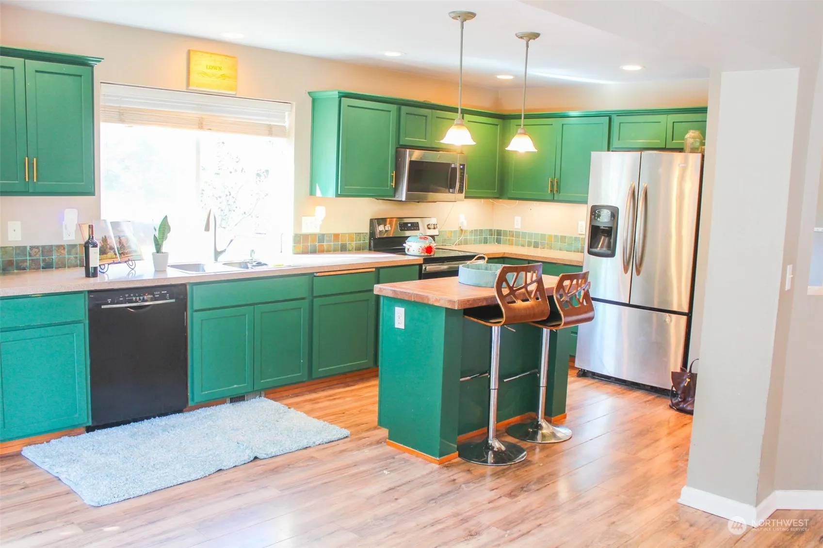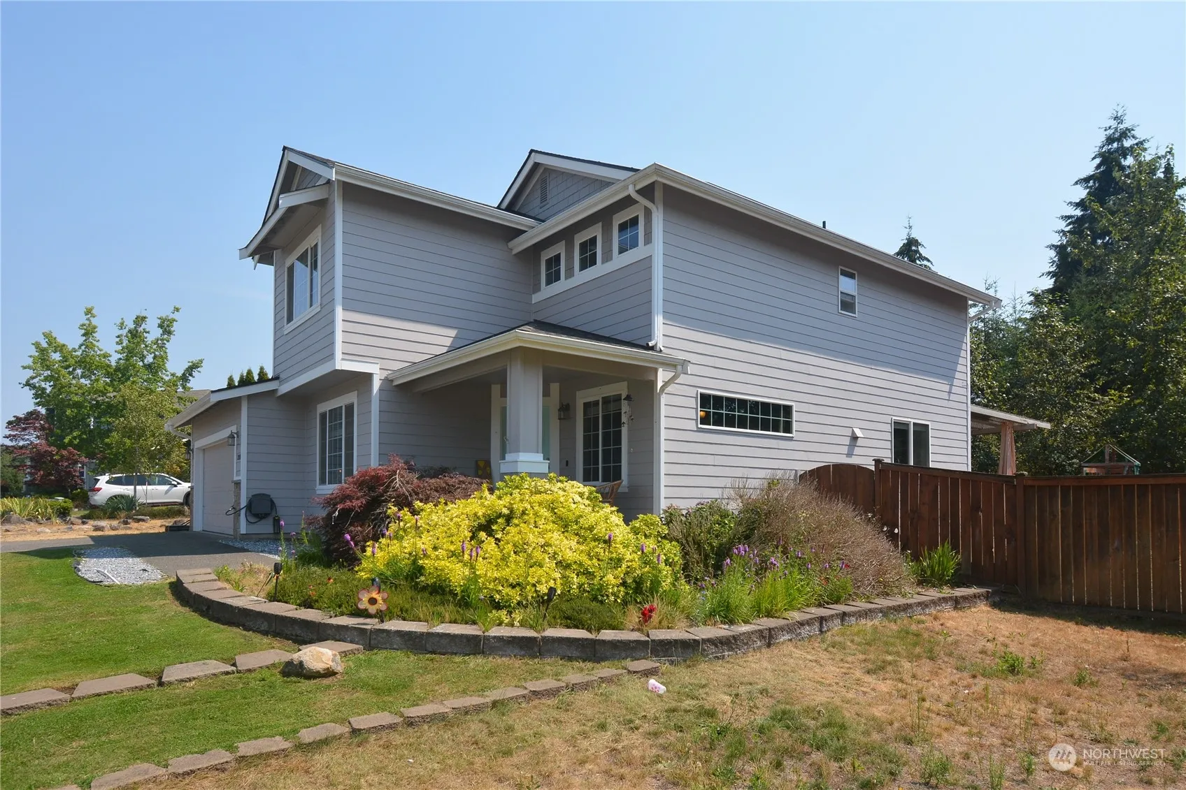 Welcome to the coveted Buttes gated community. Open floor plan with 2,542 sq ft, 4 bedrooms 2 1/2 baths. Master bedroom on the main floor with 2 walk-in closets and a 5-piece bath. The kitchen with an island & eating bar flows to the family room with a corner gas fireplace. The backyard is fully fenced with a covered extended patio and a hot tub to enjoy. Quiet cul-de-sac, and backed up to a protected green area. The home will transfer the solar energy source, cutting the monthly electricity bill.