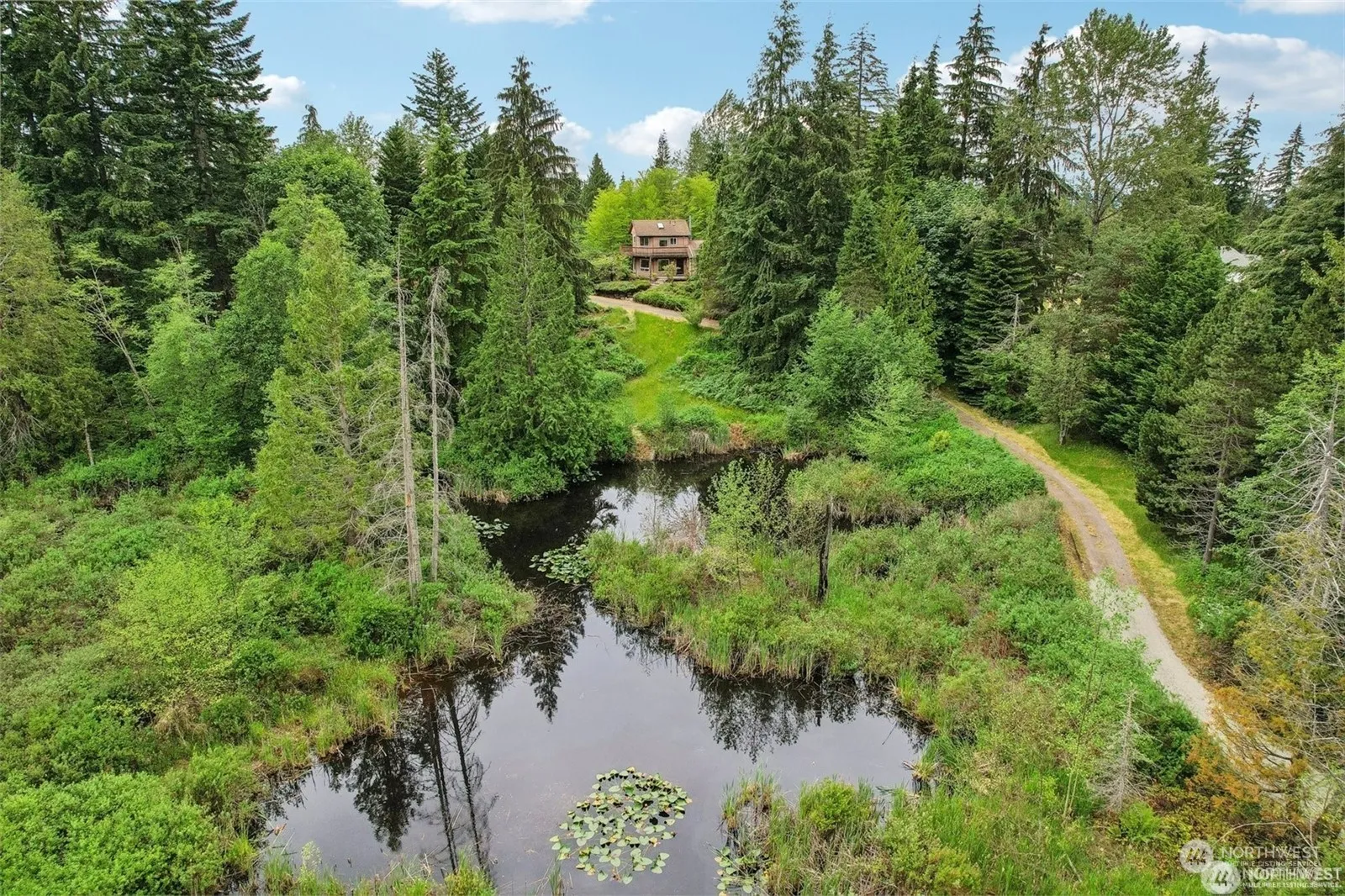 This is the proverbial house on the hill – overlooking 6.5 acres of wooded estate and a year-round natural pond. You’ll see wildlife more often than your neighbors, though you’re just 12 minutes from downtown Monroe. Extra large 1200sf+ detached garage has space for multiple vehicles and all the toys. 3 bed, 2.5 baths with a unique architectural style, this spacious home features a livable floorplan, 2 story wraparound deck, and a 2nd story primary with en suite and sweeping views.