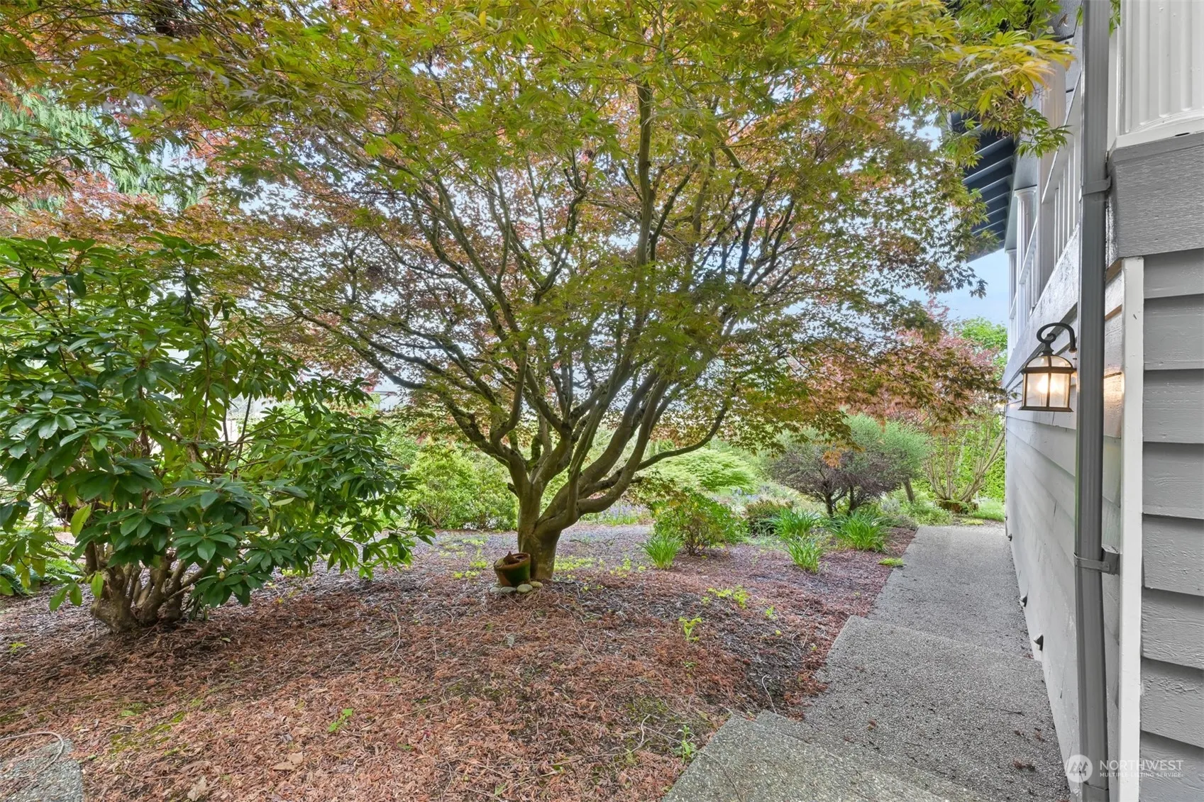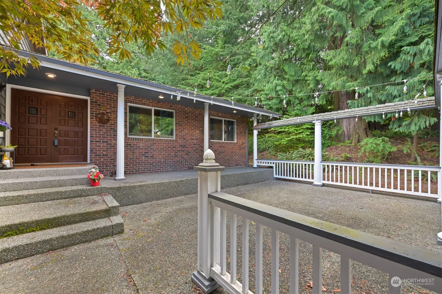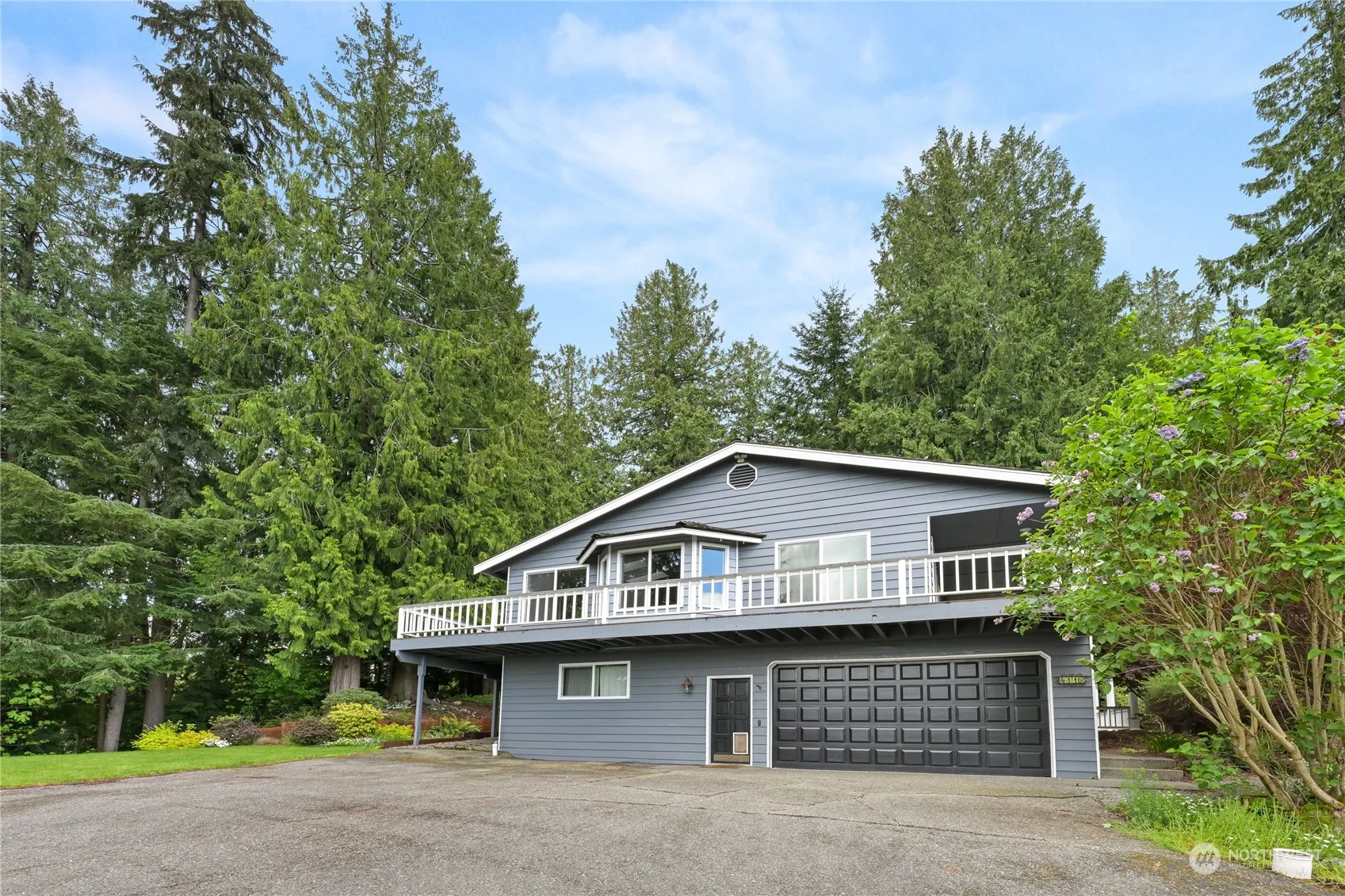 No shortage of entertaining options here! Before you get to the front door, you are greeted by a massive Japanese maple, the centerpiece in one of the landscaped gardens, along with a private outdoor patio. In this split level 3 bed 2 ¾ bath home, you will find a large kitchen w/eating area and a double-sided wood fireplace to warm up your mornings. There are two entrances to the massive wrap around deck including a covered outdoor area to stay relaxed and not have to worry about those Northwest rainy days! Downstairs, you will find the bedrooms, including the Primary, which has its own bath and private outdoor patio wired for a hot tub. To top it all off, there is also a fully furnished state-of-the-art theater with reclining chairs!