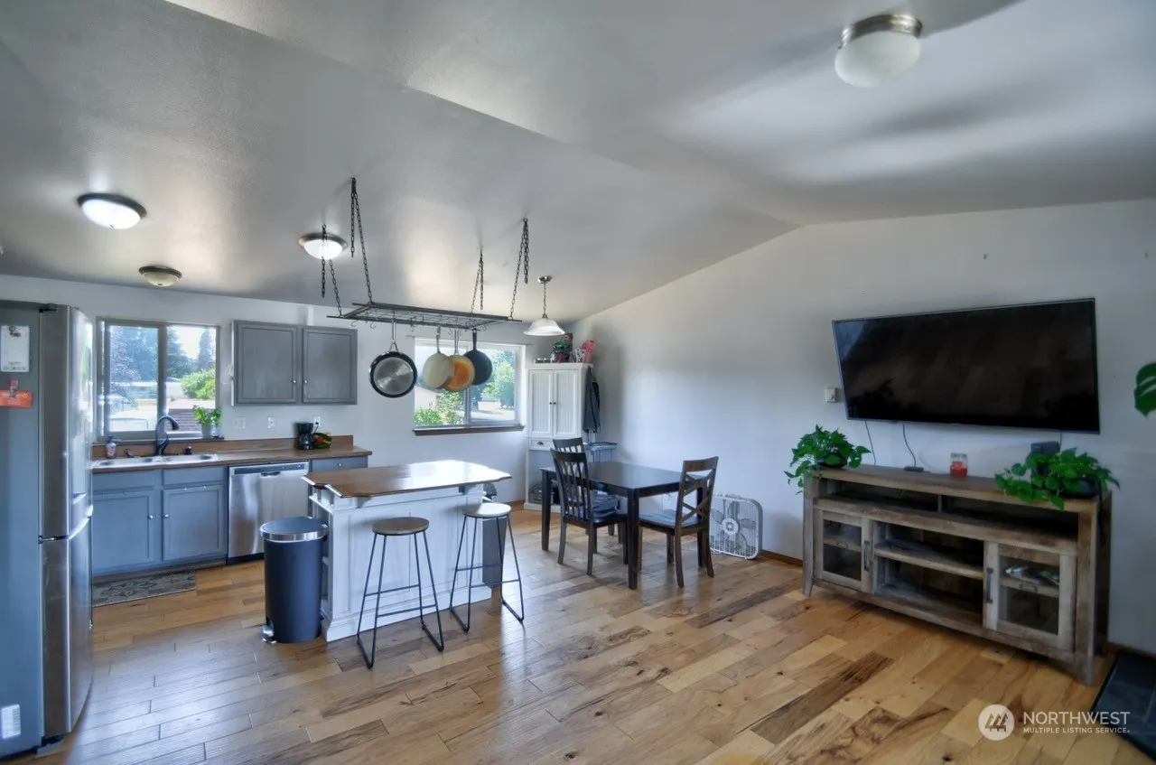 Welcome to this Nisqually Pines split level home with a country feel inside. The open concept upstairs has beautiful wood floors in the kitchen, dining and living room and a wood burning fireplace. The downstairs has the 3rd bedroom, laundry room and a rec room opening up to the large back yard complete with an outbuilding and a tiki bar. The community is well maintained and has 4 parks including a private Nisqually riverfront park and a community pool. Located just outside of downtown Yelm, this home offers an easy commute to JBLM or the government buildings of Olympia.