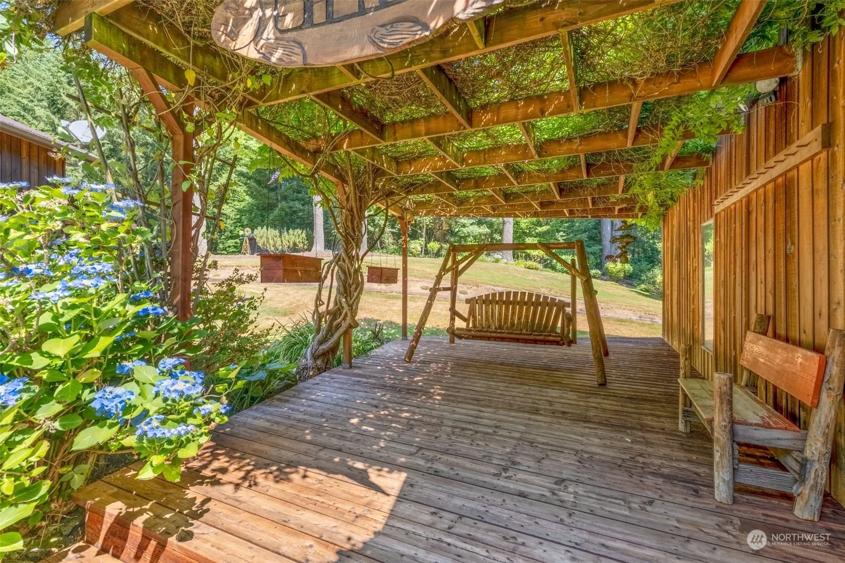 This private, peaceful, oasis has been meticulously maintained and improved. Open floor plan, loft, and large bedrooms create a lovely living space. Kitchen with quartz countertops and eating bar, large dining area for gatherings. Natural wood trim and ceilings let the beauty of this home shine. New heating and cooling, sunroom, metal roof, and wrap around decks. Primary on main. Park like grounds feature a spring fed pond, and creek. The mature landscaping gives blooms and new visual interest year round. Wisteria, Honeysuckle, Lilac, Apple, etc. Plenty of space for your hobbies in a well equipped shop, keep your yard tools in the sheds. This two bedroom, two bathroom home has a full one bedroom apartment above the shop.