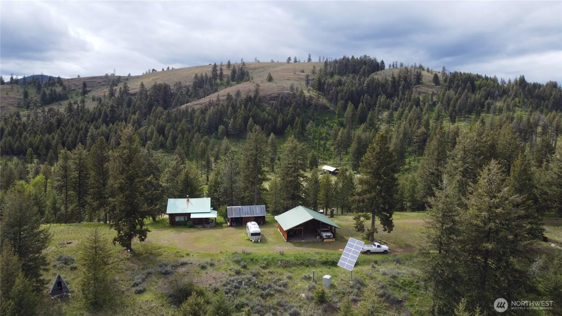 Your own mountain hideaway! This 62 acre property features a 1 1/2 story, off-grid cabin, updated in 2008, with a 180 degree view of the Kettle Mountain range. Kitchen features stainless counters, gas range and refrigerator. the upper floor bedroom has an attached sink and shower. There’s an additional 1/2 bath on the main floor. Multiple outbuildings, including a guest cottage, storage sheds and a workshop with a 3-bay carport. The fenced garden has two greenhouses and established fruit trees. This property is private but convenient to local amenities. Abundant wildlife occupy the hundreds of acres of public land that border it. This stunning mountaintop has everything you need to enjoy the outdoors.