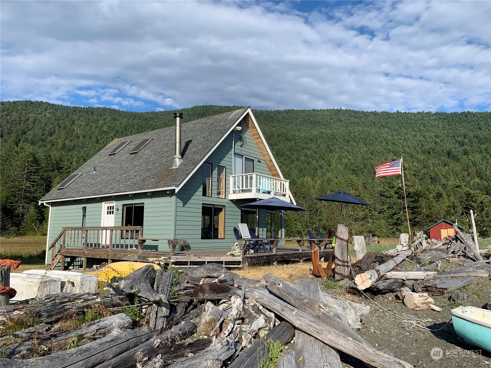A PIECE of PARADISE… for a Great PRICE…turnkey… furnished if desired A rare offereing! This super nice beach house in the San Juan Islands, with a 110 feet of low bank waterfront access. Lot #1 Madrona Estates. The 1450 square-foot house has four bedrooms… two large upstairs with king-size beds, two downstairs bedrooms, many big view windows, two inside baths, one outside shower, roof in good condition, one 250 gallon and one 125 gallon propane tank, large detached maintenance building, ten newer UPS rated solar batteries, solar cells, many tools, updated septic, , 8-foot Livingston. The widest low bank lot on the beach and butts up to DNR state land on one side and a fresh water marsh on the rear.