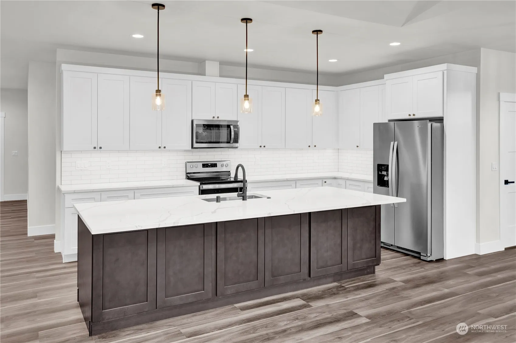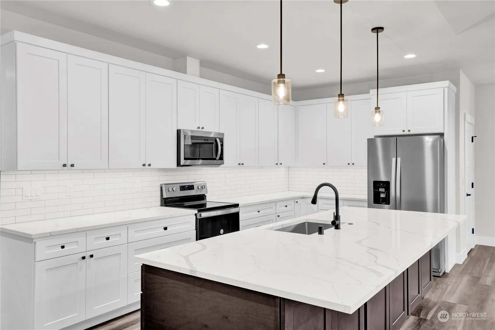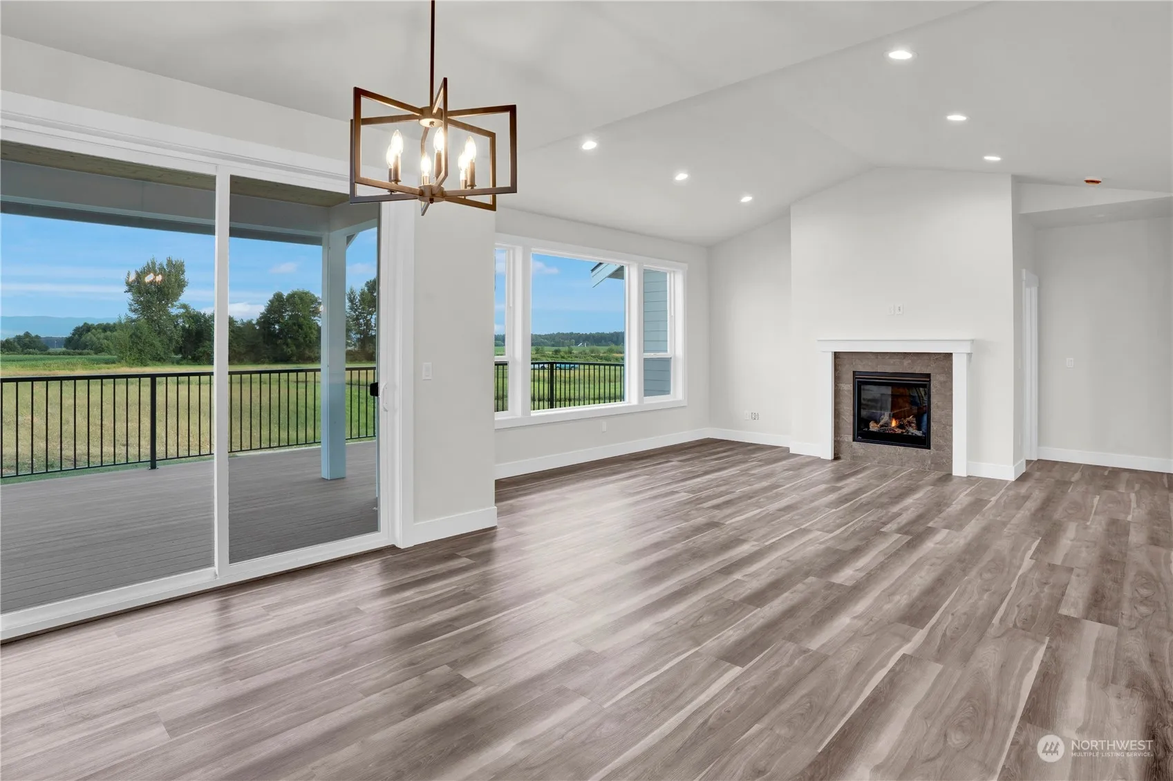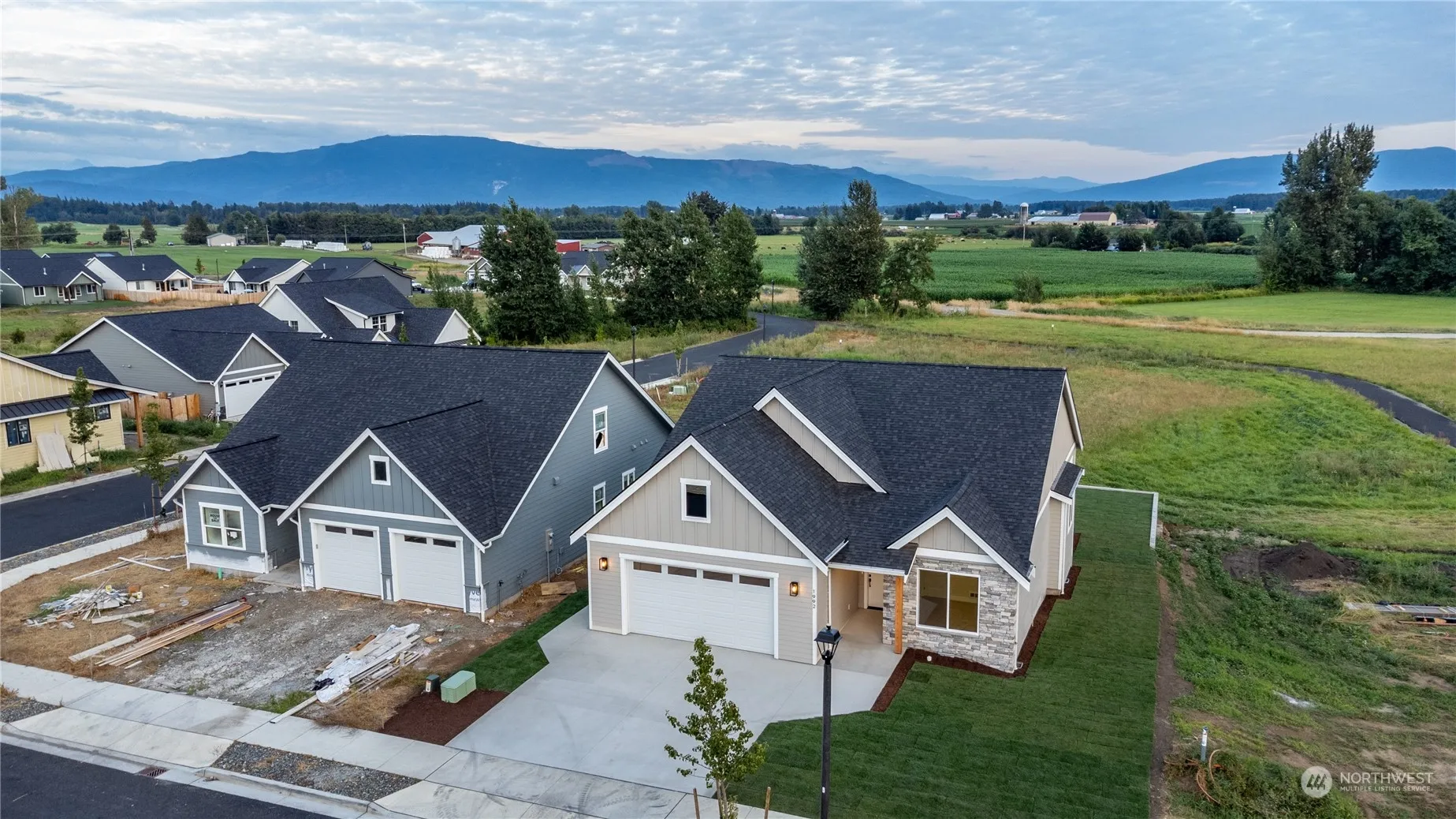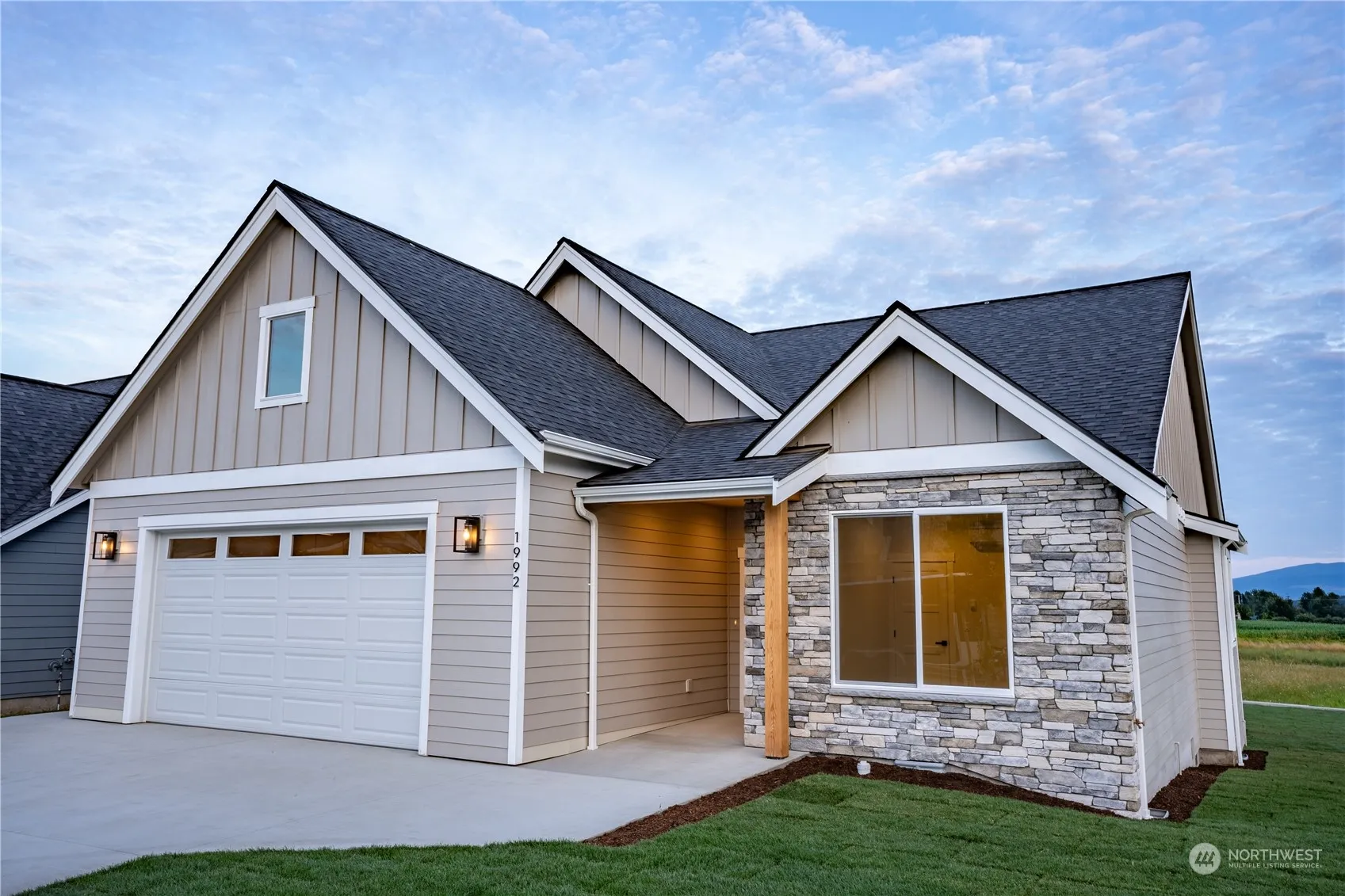 Step into modern elegance with this newly constructed home, designed for effortless living and unparalleled comfort. This single-level gem features no-step entry and includes 3 spacious bedrooms, 2 full bathrooms, and an open floor plan that seamlessly blends contemporary design with functional living. Vaulted ceilings, quartz countertops, walk-in pantry, gas fireplace, and stainless steel appliances. The primary bath offers a luxury tile shower and freestanding soaking tub. Catch the morning sunlight on the spacious walkout, partially covered deck. The sunny living room and kitchen take in passive solar natural daylight. The large, level backyard showcases stunning mountain views. 4-zone ductless heating and AC. Electric car charger ready.