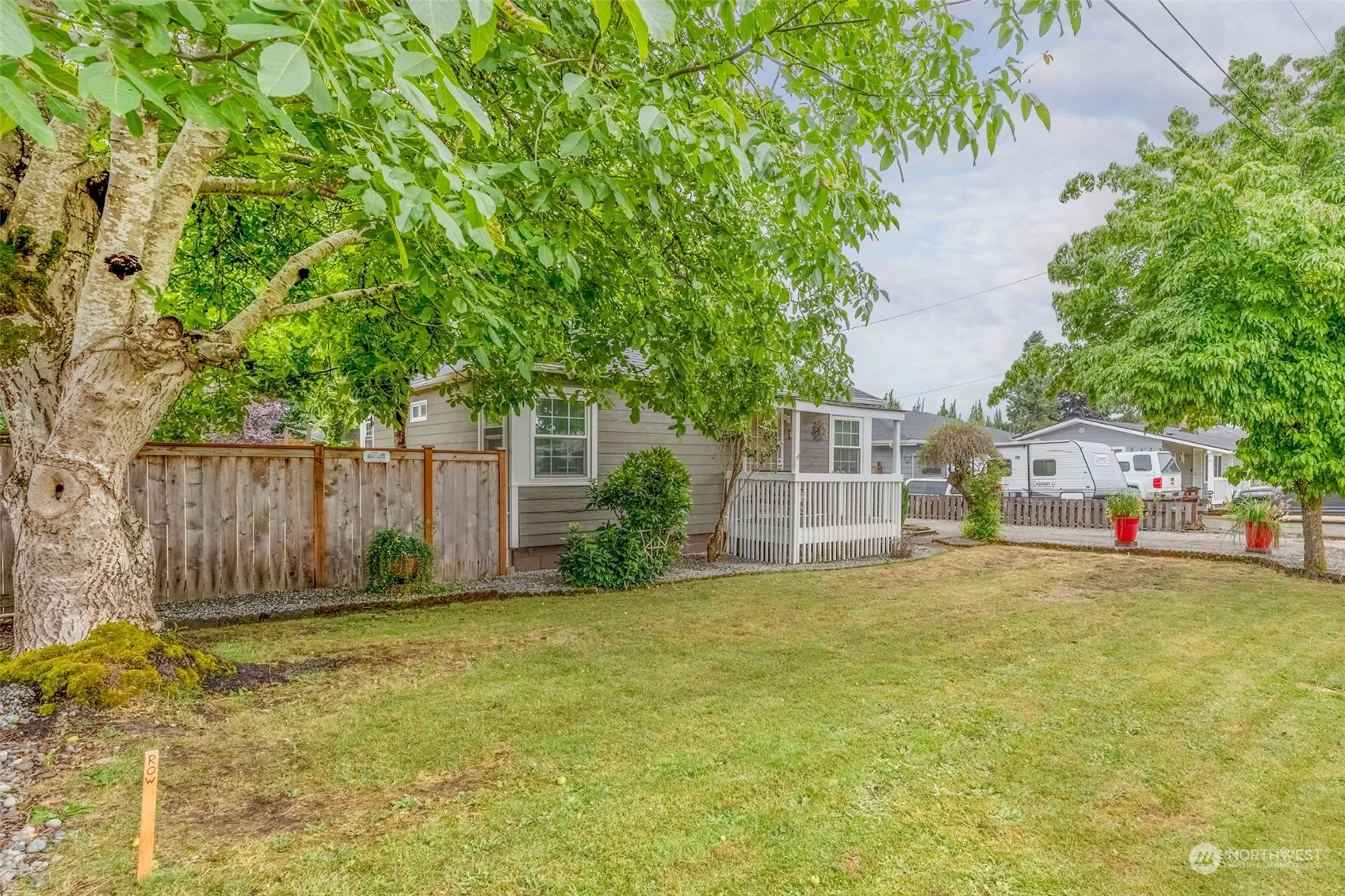 Spacious 1950 Minimal Traditional 2 Bed 1 Bath w/ more than 1,000 SF of Living Space. Centrally located in a Close In & Convenient Location. Just Minutes to I-5. More than a Quarter Acre of Beautiful Oasis-Like Landscaped, Private, Treed Grounds. Garden Space, Apple Tree, Cherry Tree, 2 Apple Blossoms & More. Mostly Fenced Yard. Very Useful 840 SF + Detached Tandem 1 or Possibly 2 Car Partially Finished Garage Shop. RV Parking w/ Electrical Hookup. Extra Deep Driveway Off Street Parking. Covered Deck. NEW Roof. Updated Windows. Wood Floors. Ceramic Tile. Kitchen w/ SS Appliances. Spacious Dining Room. Living Room w/ Gas Fireplace. Large Laundry/Utility Room. Cul De Sac Street.