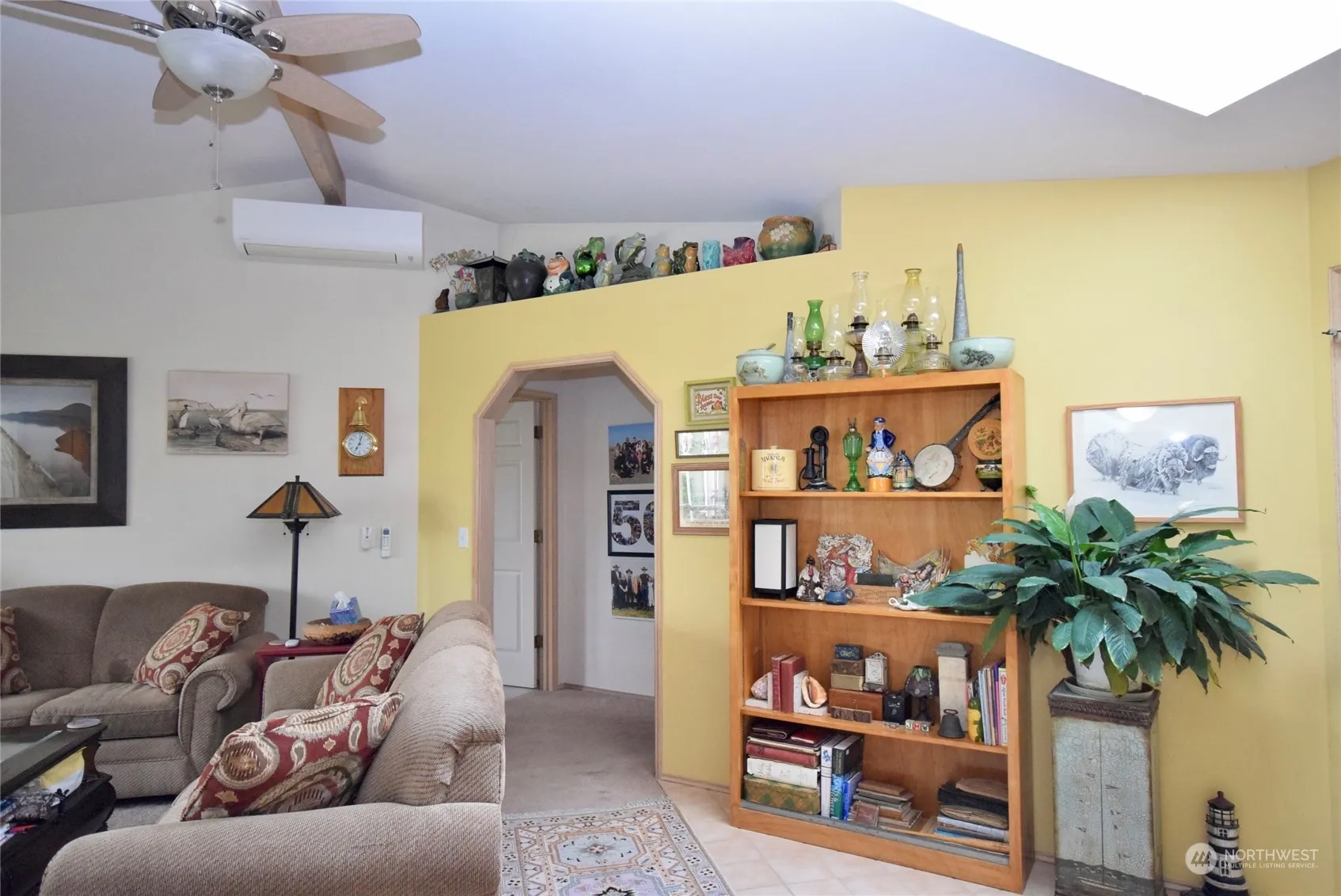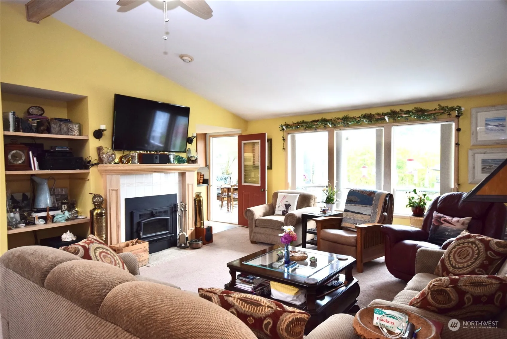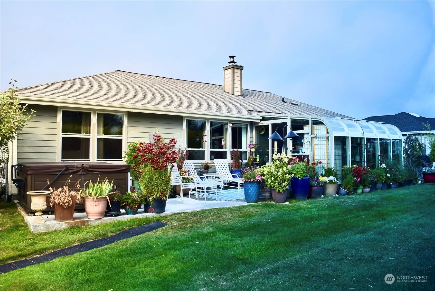 Fabulously landscaped Mains Farm home! Gardeners dream with flower beds, raised garden beds, fruit trees, large shed & amazing greenhouse. Back yard also has 2 patios & hot tub. Home is 3 bedrooms & 2 baths. One bedroom has a Murphy bed. Large dining room off kitchen. The other side of the kitchen has a beautiful sunroom with ceiling shades. There are also skylights, wood stove, & ductless heat pump. Garage is fully insulated & has built-in shelving on 3 sides with full workbench.