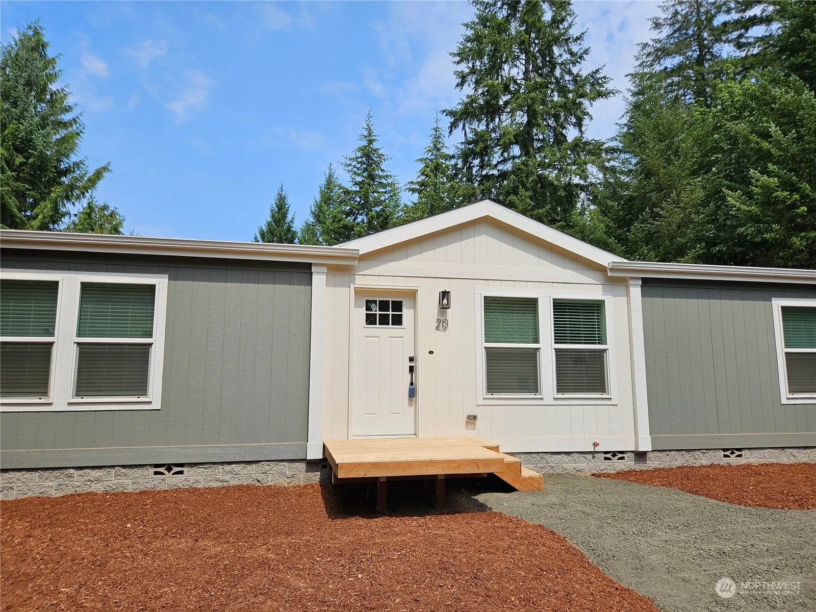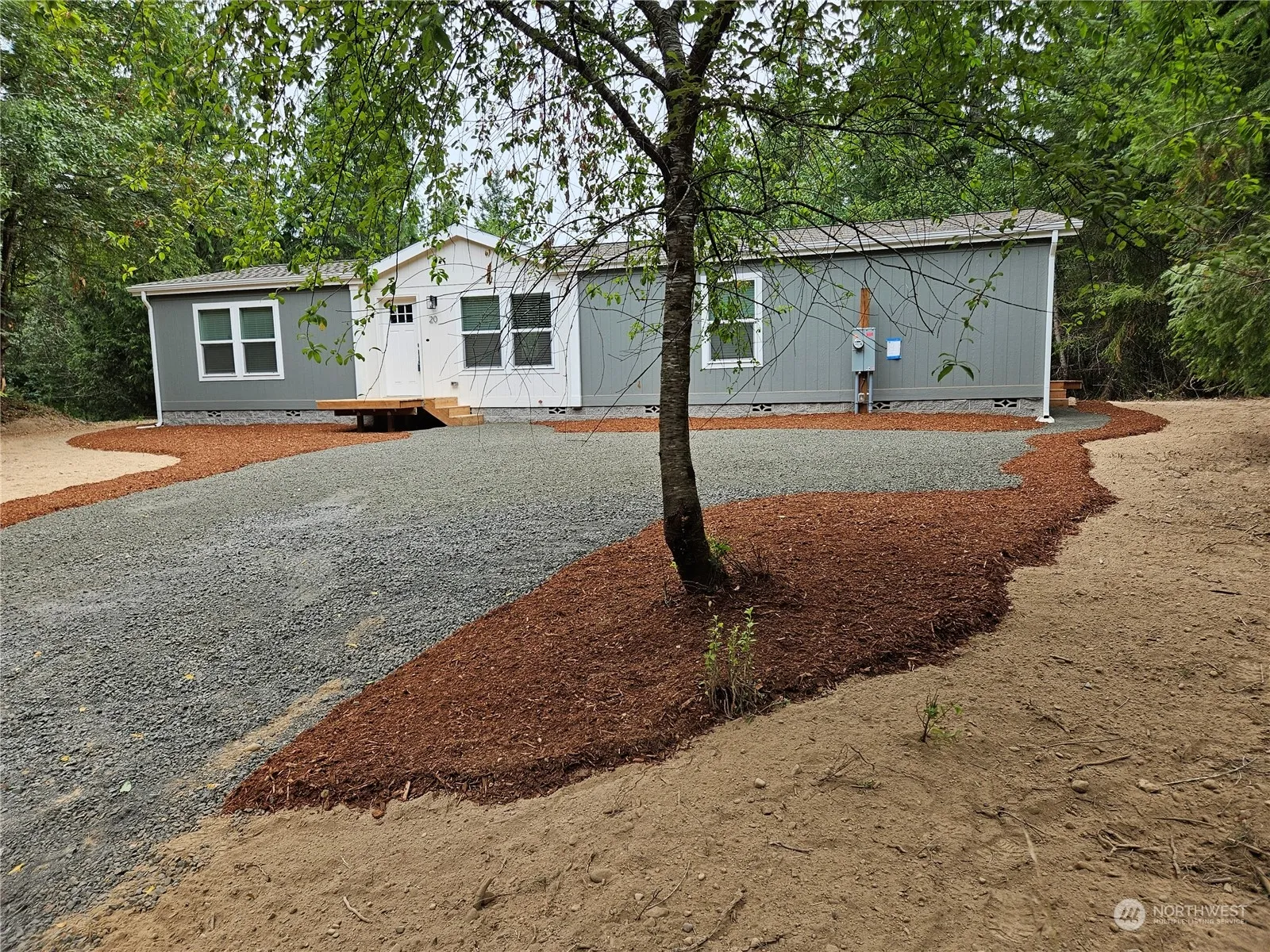 Cozy, serene, private & tranquil all describe this new manufactured home on shy 3 acres. Set back from the road, this home is positioned for maximum privacy. There are cleared areas just awaiting for your unique yard ideas. Inside you’ll find the primary at one end of the home w/ walk in closet and large bathroom with double sinks, and it is separated from the other beds by the spacious living room, open kitchen & flex room. Ample storage. Home has a brand new 4 bed septic. Work from home? High speed fiber optic internet currently being installed on Olyview Rd! 20 Olyview is a wonderful home that feels like a getaway. Don’t wait to make an appt to come out and view today!