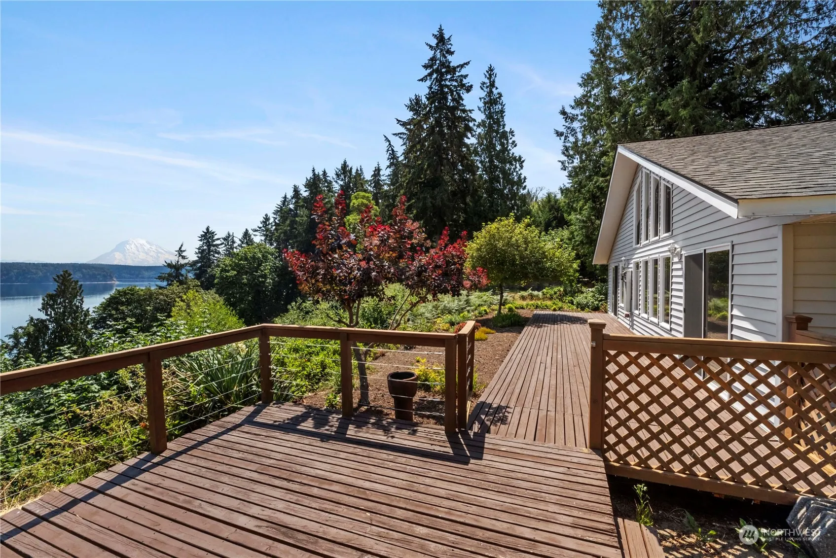 This is it! Your chance to live on the most desirable drive on Anderson Island! This custom rambler has been designed with every detail in mind! Wake up to stunning sunrise views w/ Mt Rainier as your backdrop on this picturesque high bank property. Floor-to-ceiling windows & 17’ vaulted ceiling showcase an expansive Sound view that will WOW you from your first step inside. This 1-owner home boasts high end finishes, like solid maple cabinetry, Corian countertops, & perks such as walk-in pantry, mudroom, & heated 10’ garage. Start or end the day w/a spa-like soak in the built in jetted hot tub in your primary en-suite for the ultimate experience! Sit out on the deck & enjoy wildlife, watch the ferry, or just soak it all in! This won’t last!