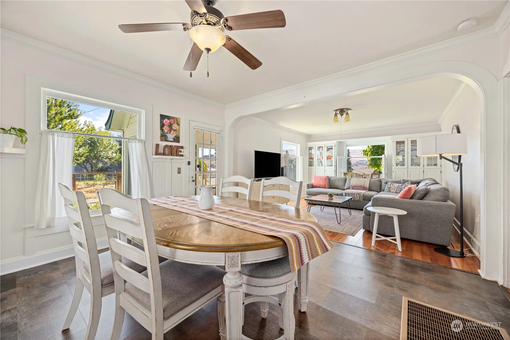 Lovely 3 bedroom, 1 3/4 bath on large corner lot. RV, boat and parking for 4 cars. Beautiful mature landscaping, two brick patios with river and mountain views. Great for entertaining or a morning cup of Joe. Picturesque fully fenced and gated yard. Short walk to park, playground, town, school and boat launch. Year round activities, water sports, fishing, boating, swimming, Alta lake St Park, Alta golf, Gamble sands golf, winter skiing, farmers markets in Chelan and Twisp. Rare opportunity to live in a beautiful historic home. Garage has 2 outbuildings attached. potting shed & tool storage. Upgrades: heat pump / furnace and AC, fiberoptics, propane tank owned, fully fenced and gated. Speed queen washer/dryer, dishwasher. Basement w storage.
